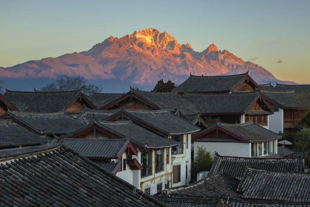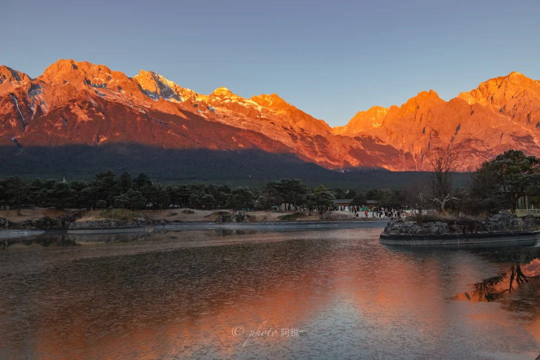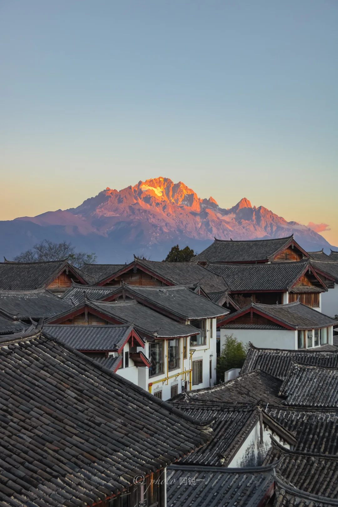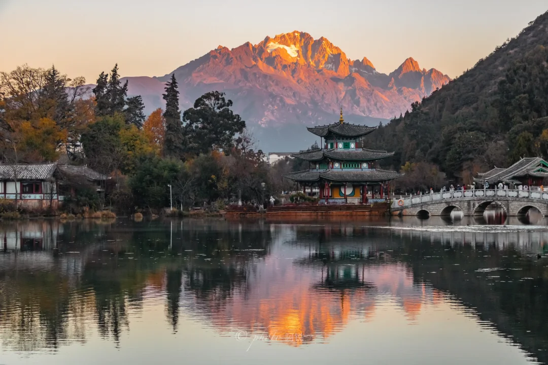 来了丽江总得去看下玉龙雪山的日照金山吧🏔️ 玉龙雪山作为北半球最南边的一座雪山。在丽江市区也肉眼可见,距离非常近。也是很多人第一次看雪山和日照金山的首选地 📸来了丽江总共看了四次玉龙雪山的日照金山,推荐了以下机位: 1️⃣黑龙潭公园。国家地理机位推荐,共两个机位。图2~图5在锁翠桥。图6~图8在五孔桥。这里距离丽江古城北门仅2km,适合睡懒觉的人,能拍到亭子和玉龙雪山同框以及倒影 2️⃣在山也民宿门口观景台。图9~图11。丽江古城里边的在也山民宿的门口,靠近狮子山观景台,这里能拍到玉龙雪山和古城同框 3️⃣甘海子瑞士风情园。图12~图14。在玉龙雪山游客中心大门附近,这里适合去爬玉龙雪山的人看完日照金山就可以上山,人会比较多,可以拍到水中雪山倒影(可惜那天太冷湖面结冰了),但是这个机位没有东巴谷那边好,因为湖面太小没办法把整排雪山拍进去,而东巴谷那边是可以,如果时间充足我个人推荐东巴谷更好拍 4️⃣狮子山观景台门口。图15~图17。机位在狮子山观景台,也适合住在古城的人,但是机位有点被树木挡住 5️⃣狮子山观景台下来的一个随机机位,其实在古城里很多可以都可以拍到日照金山 📸其他位置推荐:清溪水库公园,中济海公园,丽江古城北门等 📝最近玉龙雪山日照时间大概是八点后,以上机位除了甘海子比较远得早起其他比较适合懒人观看。日出前天气很冷,记得做好防护寒冷‼️