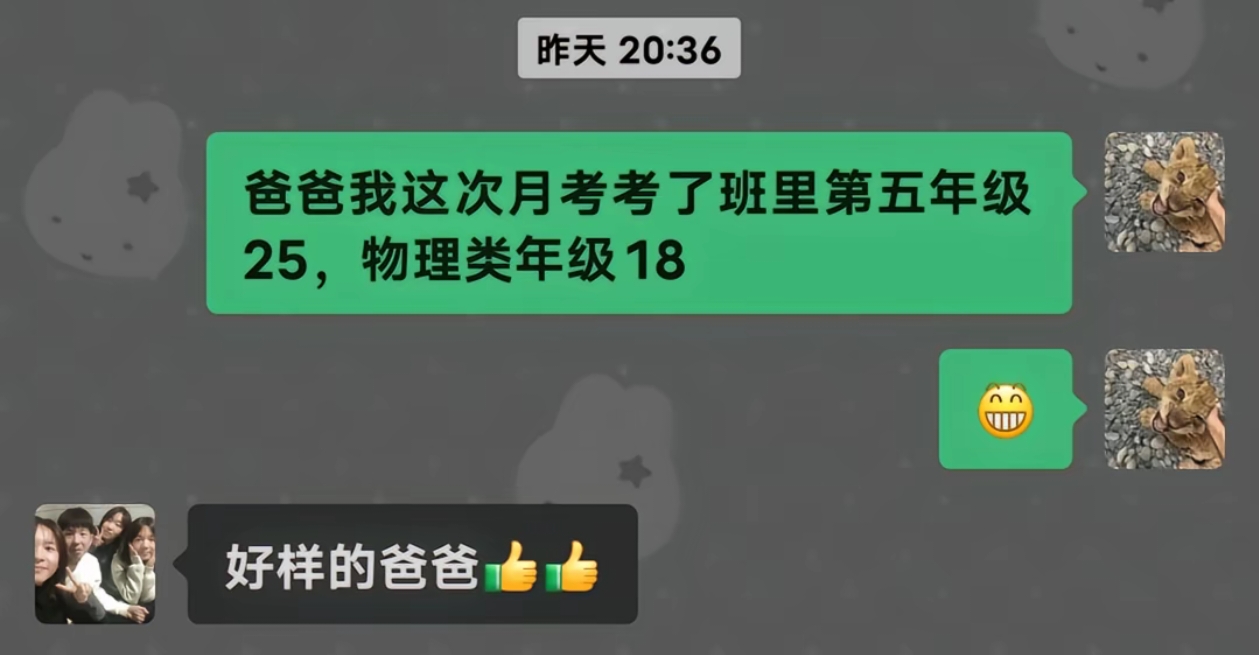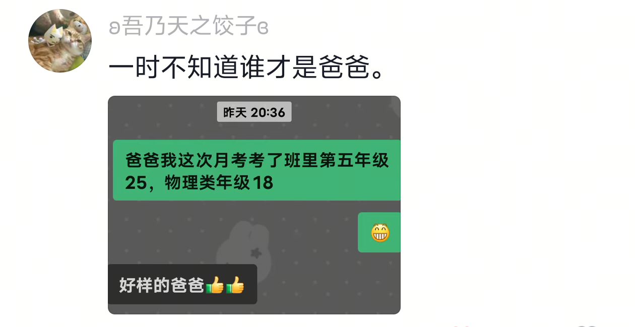 爸爸我这次月考考了班里第五年级25,物理类年级18