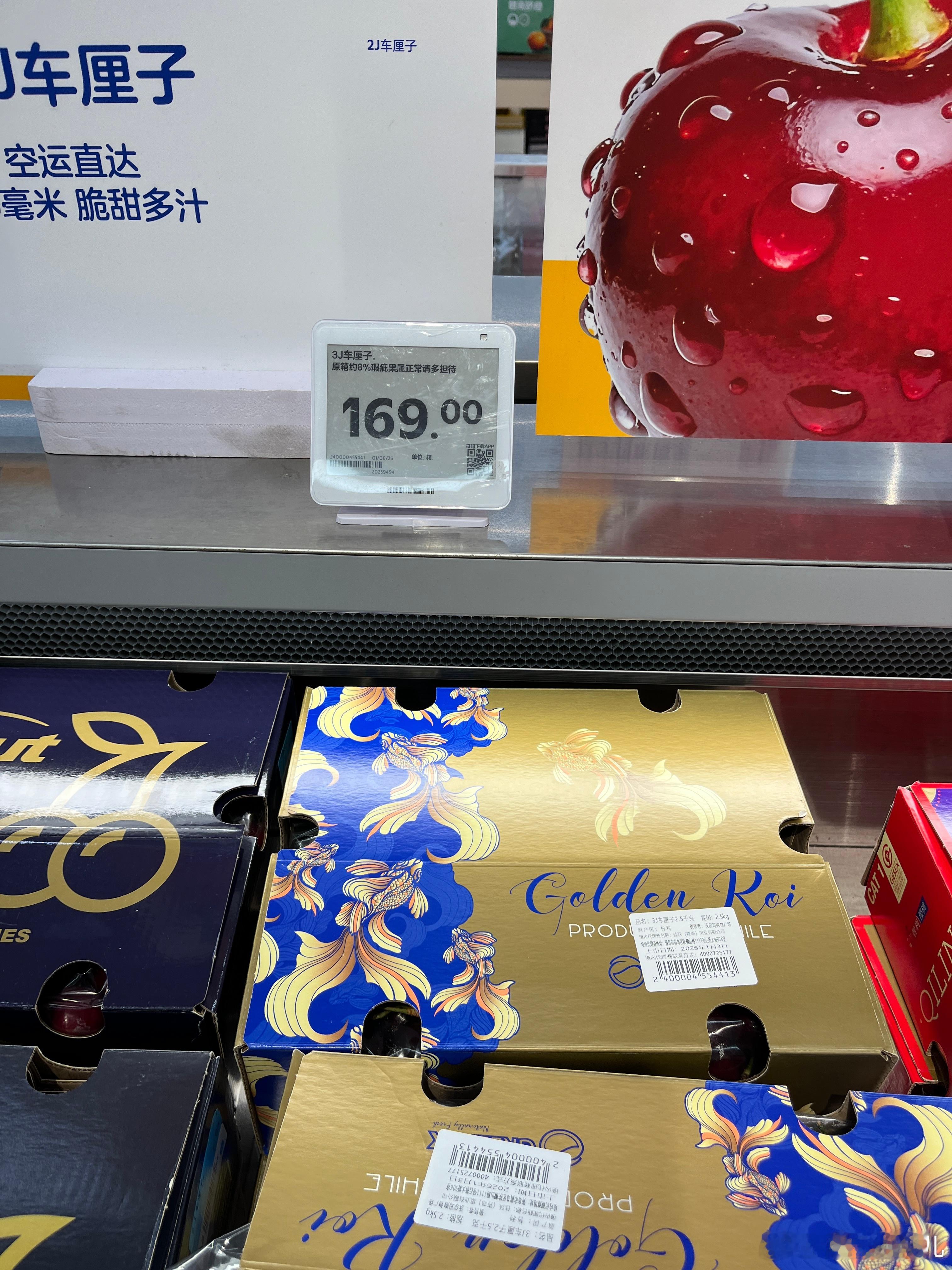车厘子2j的129元5斤,3j的169元5斤,4j的199元5斤,有降价吗?这里的j是什么意思,大小果的意思吗?我好喜欢图五的收纳盒,家里没地方放,忍住,不能买那个战斧牛排我好想吃,可是家里没有平底锅,没有空气炸锅,吃不成,只能看看