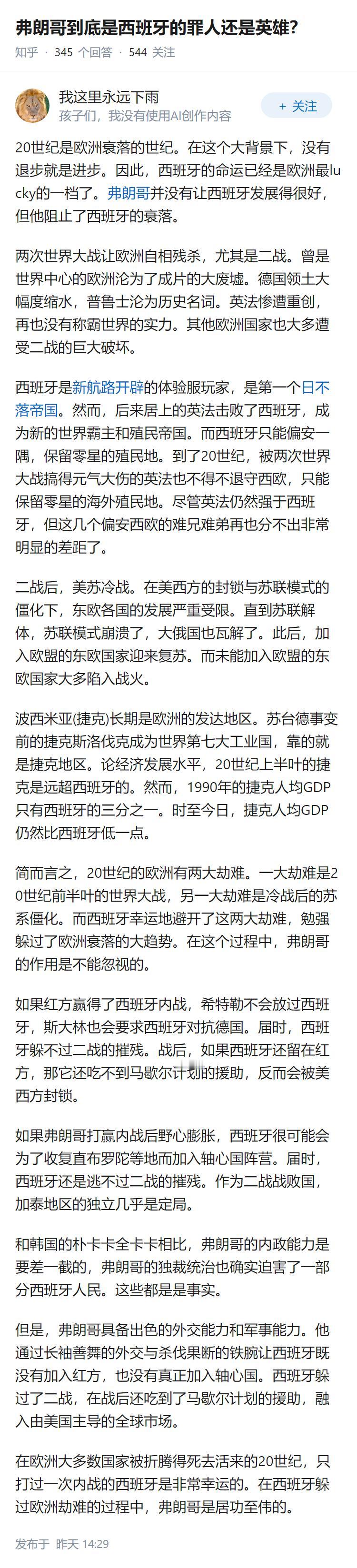 弗朗哥到底是西班牙的罪人还是英雄?