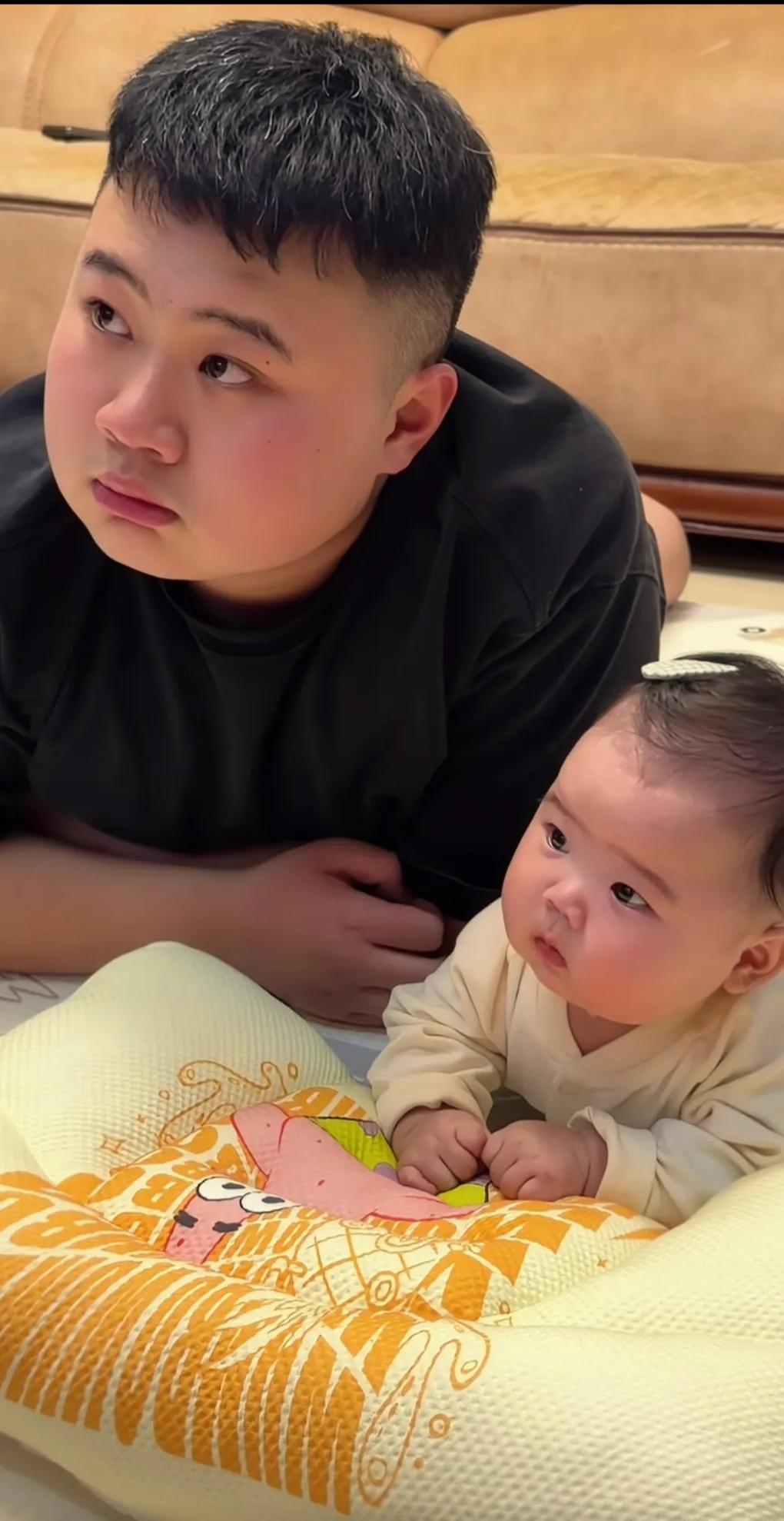 长得一模一样,一看就是亲生的。