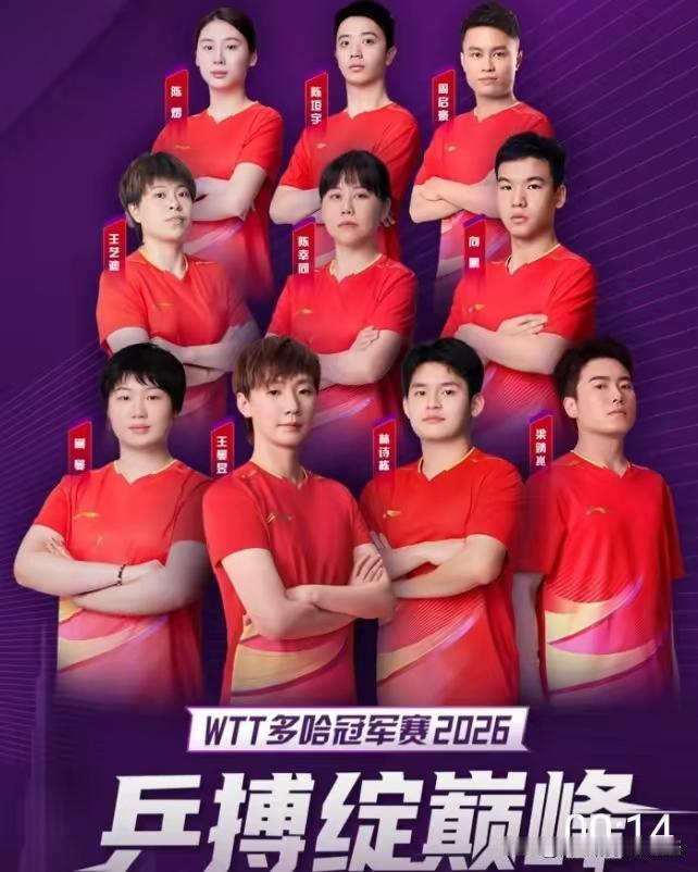 李宁发布多哈冠军赛海报:国乒队员一身红很喜庆,共十人,被网友誉为十全十美。 第一排共四人,大丫头和大胖各站两边,中间是曼昱和小石头,曼昱和小石头应该是妥妥的C位,对吗? 明天多哈冠军赛就开打了,祝国乒队员们旗开得胜,取得开门红!