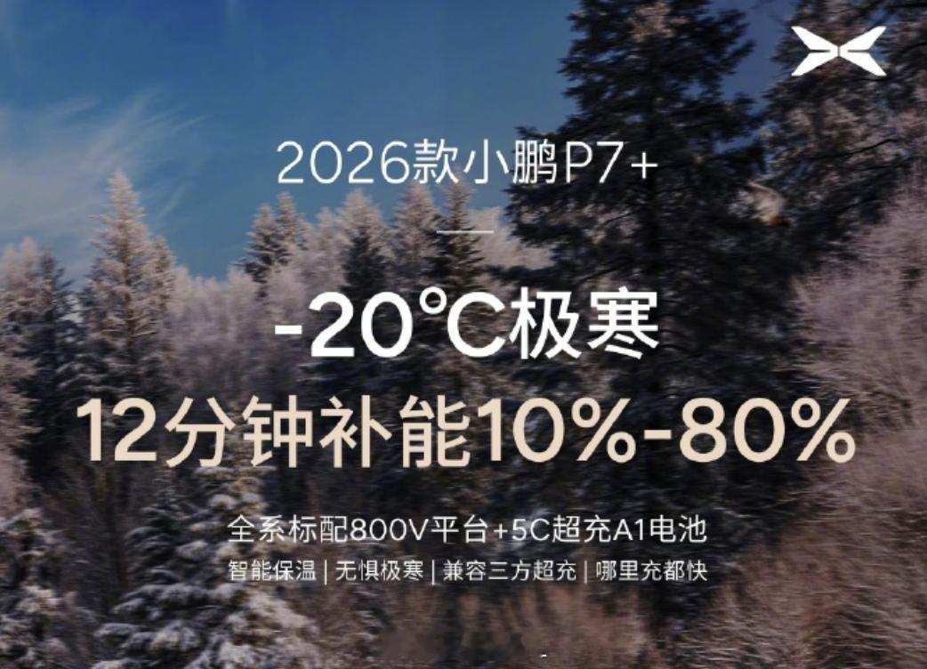 何小鹏零下20度冬测P7+和G7 这波小鹏的增程产品,是选择在冬天发,目的也是要解决之前纯电覆盖不到的区域。在零下20度的环境下,小鹏G7超级增程最终达成超1100km的综合续航成绩,2026款小鹏P7+充电时间与电池升温速率均保持高效、稳定。小鹏G7超级增程在室外-20℃极端环境下,一箱油一箱电跑了1108.3KM。全程不跨温区、0高度差、空调稳开21℃,在如此极限的场景下续航突破1000km的新能源车并不多。2026款小鹏P7+在极寒条件的表现也非常亮眼!在平均-20℃的极端环境下,电池预热功能一打开,热车状态12分钟就能从10%充到 80%。这波增程带来的销量在X9、G7、P7+的销量增加可以在后续看到,双动力的做法也确实是目前车企都要覆盖的新能源汽车大v聊车
