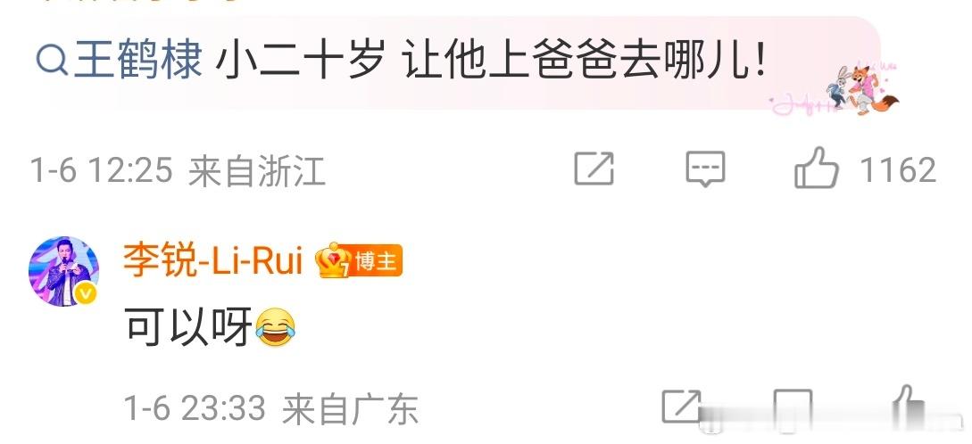 刻在骨子里的修养有礼貌的小孩谁不喜欢呢李锐夸王鹤棣是好孩子 谦逊的人可以走得更远还回复网友说让王鹤棣小二十岁去参加爸爸去哪儿~村长 我也是看着您的节目长大的李锐陪孩子追星王鹤棣