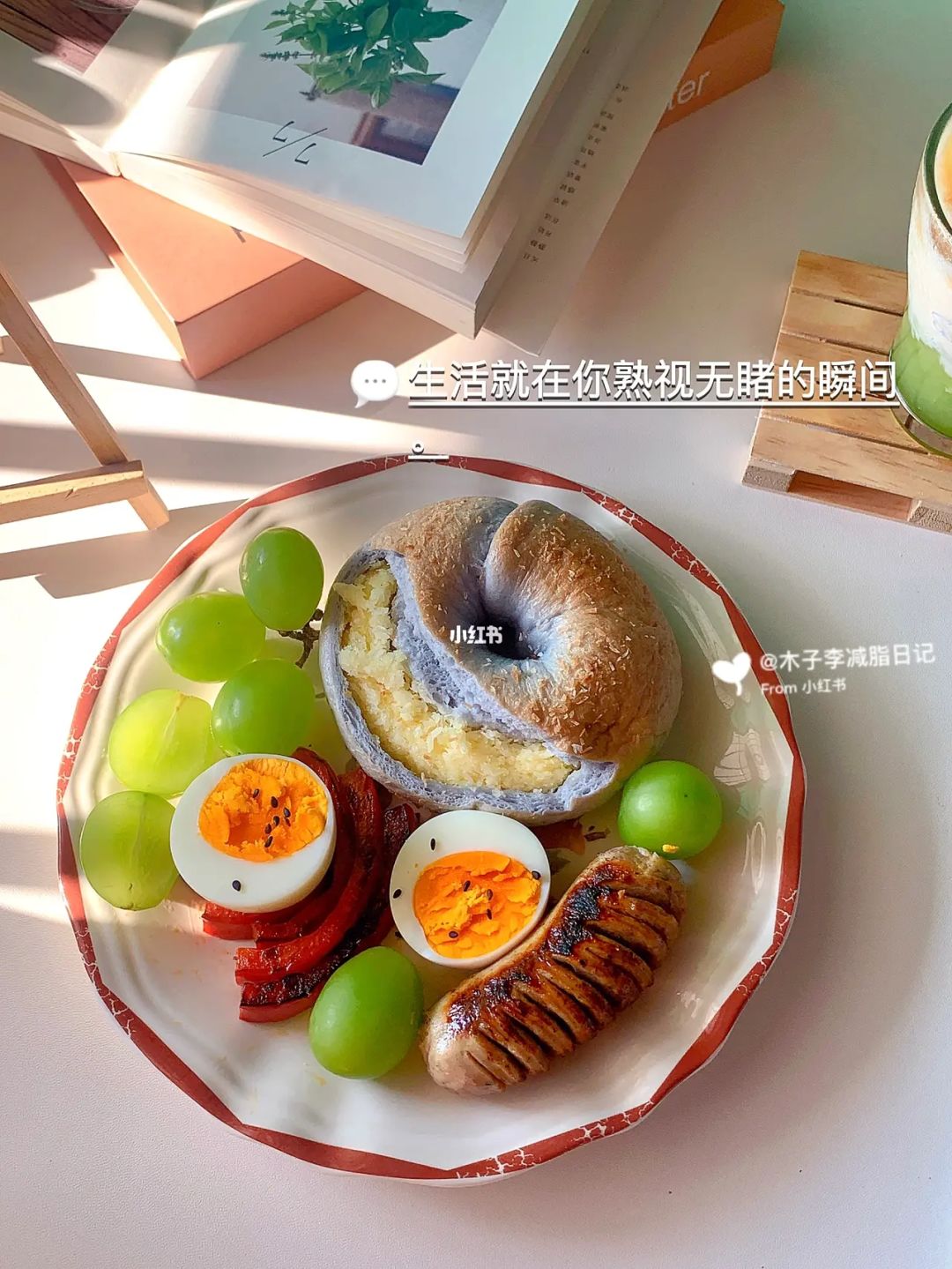 2022.8.21 🔹初始体重120斤 🔸现重89斤 —————————————————————— 🥯早餐:蝶豆花贝果|青提|鸡蛋|黑椒烤肠|青提拿铁 🥣午餐:凉拌荞麦面皮|白开水 💧喝水2000ml➕ 🏃♀️运动:不动 ——————————————————————— 🥐 周末愉快!