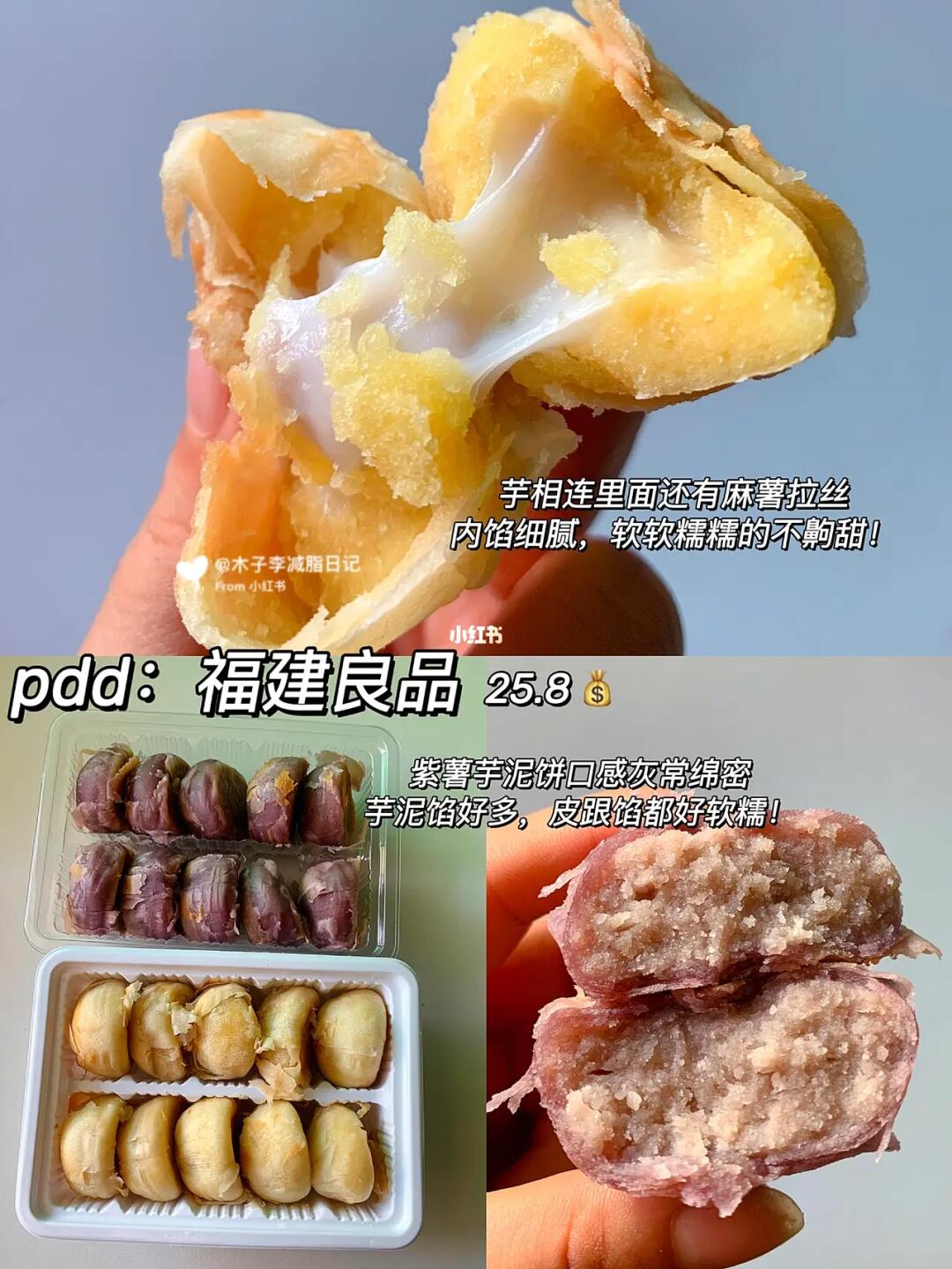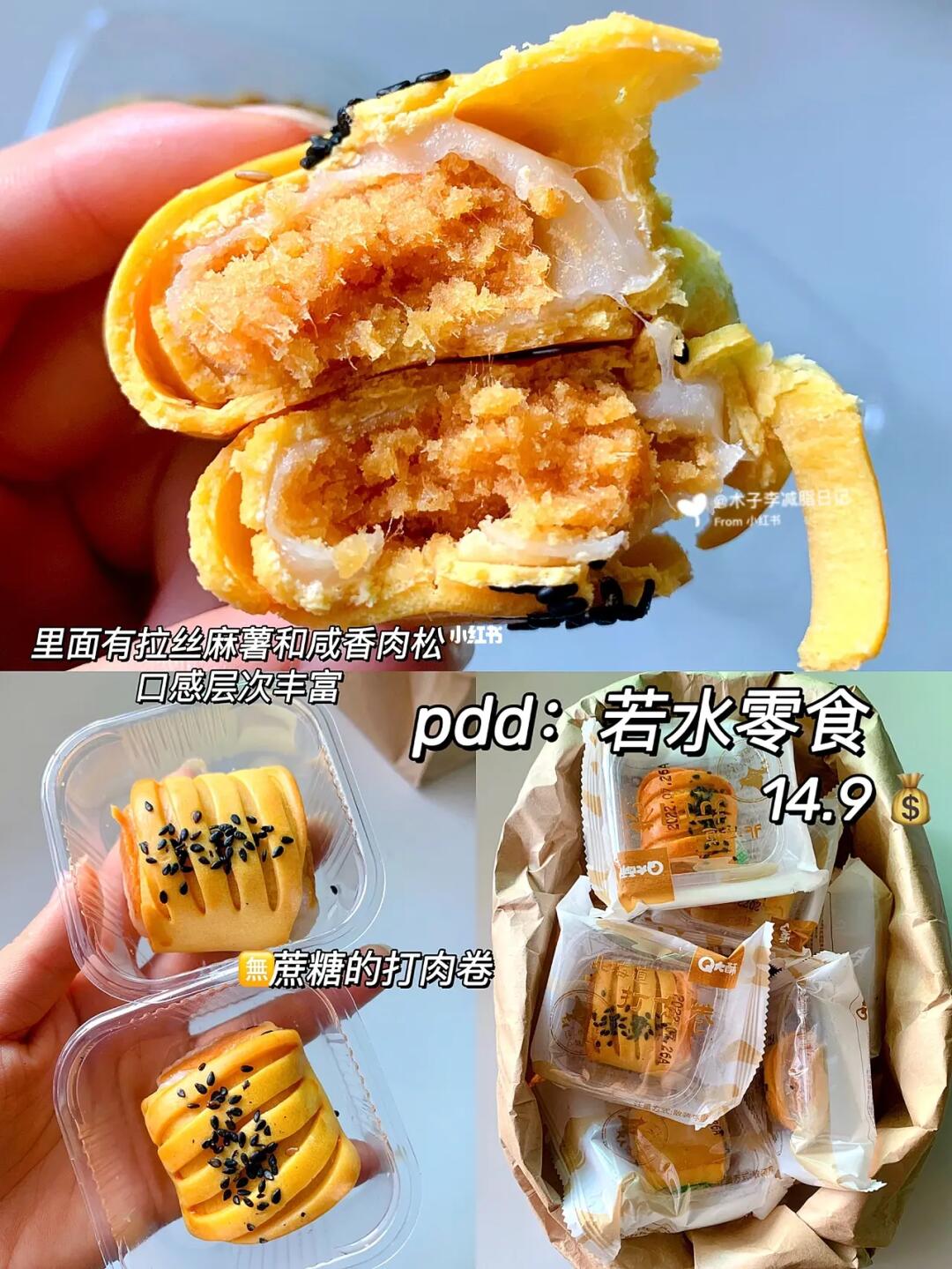纯分享,这些都是新发现的好物,平价又好吃,主要用料真的实在,一家人都爱吃! 1️⃣紫薯芋泥饼➕芋相连 2️⃣香芋紫米奶酪面包 3️⃣爆浆麻薯 4️⃣无蔗糖打肉卷 理性种草🌿