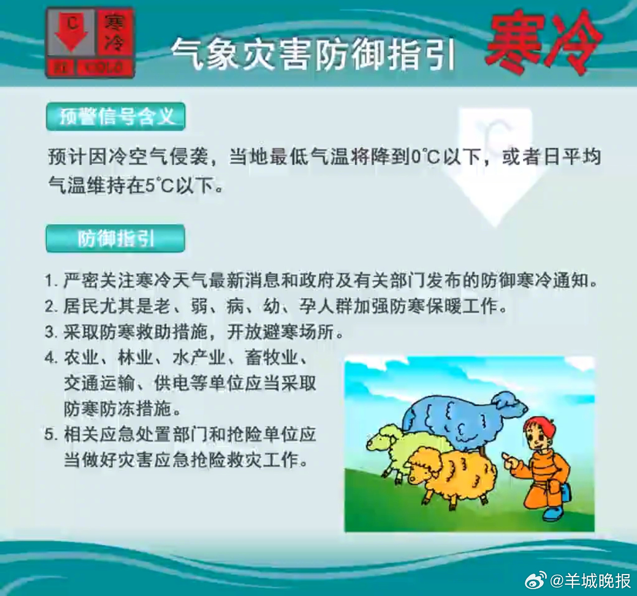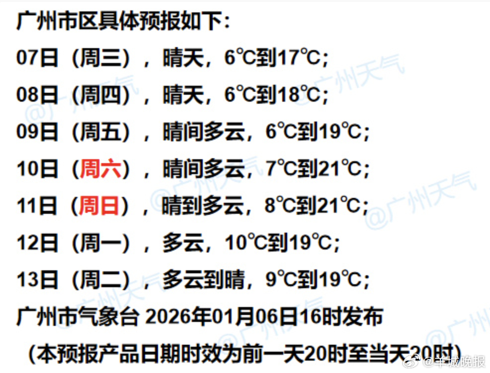 【#广东的零度有多冷#】#广东今年首个寒冷红色预警信号发布#广东2026年首个寒冷红色预警信号,于1月6日夜间在梅州市平远县发布。根据平远县气象台发布,受冷空气持续影响,未来三天(7日至9日)该县最低气温将降至0℃以下,平远县气象台于2026年1月6日21时50分将各镇寒冷橙色预警信号升级为红色,请注意防寒保暖。截至1月6日22时15分,除平远县外,梅州其余地区发布寒冷橙色预警信号。茂名、云浮、肇庆、清远、广州、韶关、惠州、河源、揭阳、潮州等市,有辖区发布寒冷橙色预警信号。广东省气象台预计,7日至8日广东陆续有弱冷空气补充,气温略降,未来几日广州持续维持晴好干燥天气,早晚寒冷。其中7日和8日粤北、珠三角北部市县最低气温介于1~5℃,其中高海拔山区-4~0℃,有霜冻和冰冻。预计9日全省大部晴到多云,昼夜温差大,早晚寒冷,粤北、珠三角北部市县最低气温介于2~6℃,其中高海拔山区-3~0℃,有霜冻和冰冻。广州市气象台预计,7日至9日广州市区最低气温均在6℃左右。预计9日起广州晴间多云,气温缓慢回升,昼夜温差大,早晚仍寒冷。广东省气象局提醒,受冷空气补充影响,广东近期早晚时段寒冷,高海拔山区有霜冻或冰冻,需注意防寒保暖。目前广东森林火险等级仍然较高,室内用火、取暖等需要注意用火用电安全,注意室内通风,户外用火需加强管理。在冷空气补充影响下,广东海面风力将重新加大,低空飞行、海上作业、海上交通、滨海和海岛旅游注意安全。([原创]记者:梁怿韬;编辑:郑宗敏;审签:周乐瑞)