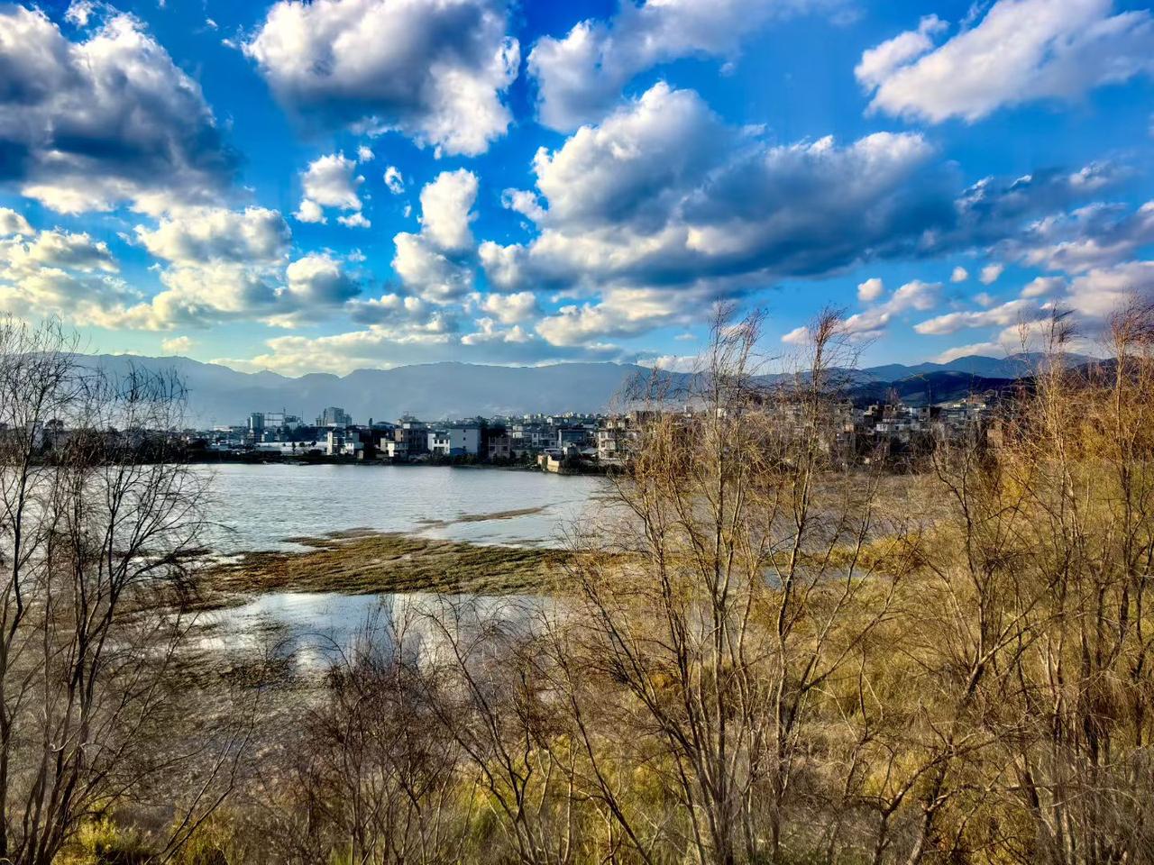今天来洱海,天蓝得跟洗过一样,云朵像棉花糖飘在空中!湖水清澈见底,波光粼粼的,远处的苍山倒映在湖面上,美得像一幅画! 洱海面积251平方公里,海拔1972米,是云南第二大淡水湖。因为形状像耳朵才叫"洱海",但其实是个湖泊。 建议下午三四点来,阳光洒在湖面上金光闪闪的,随手一拍都是大片!还可以租个自行车环湖骑行,吹着海风超舒服 大理洱海