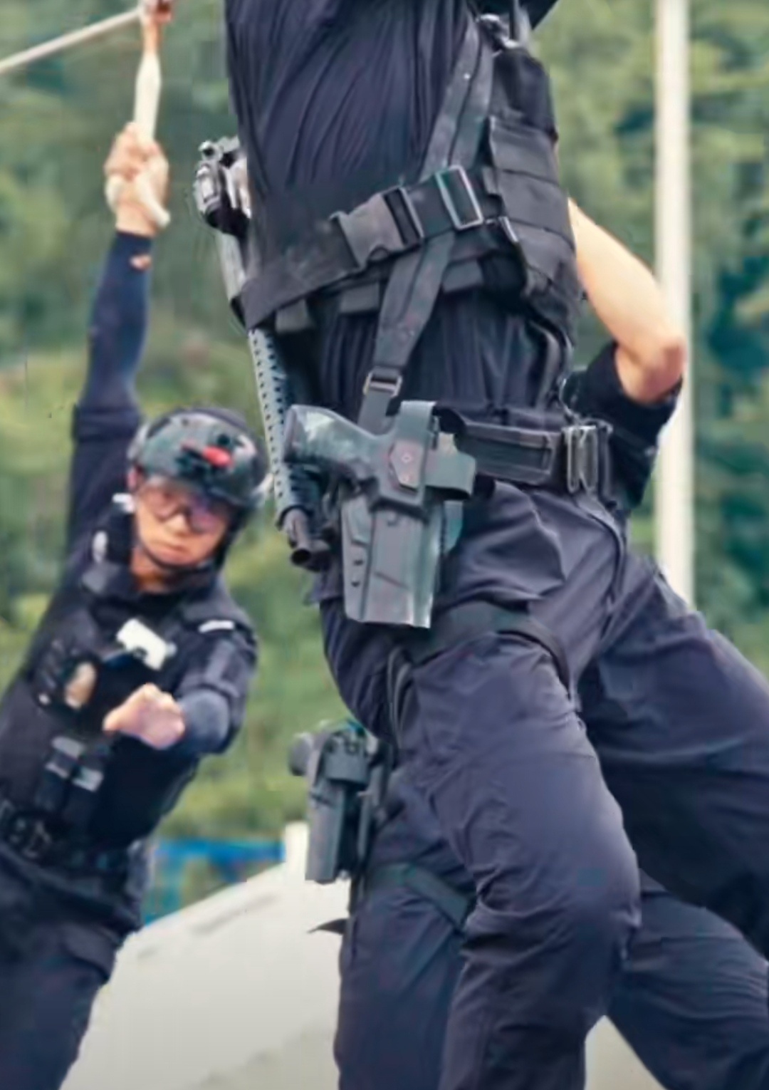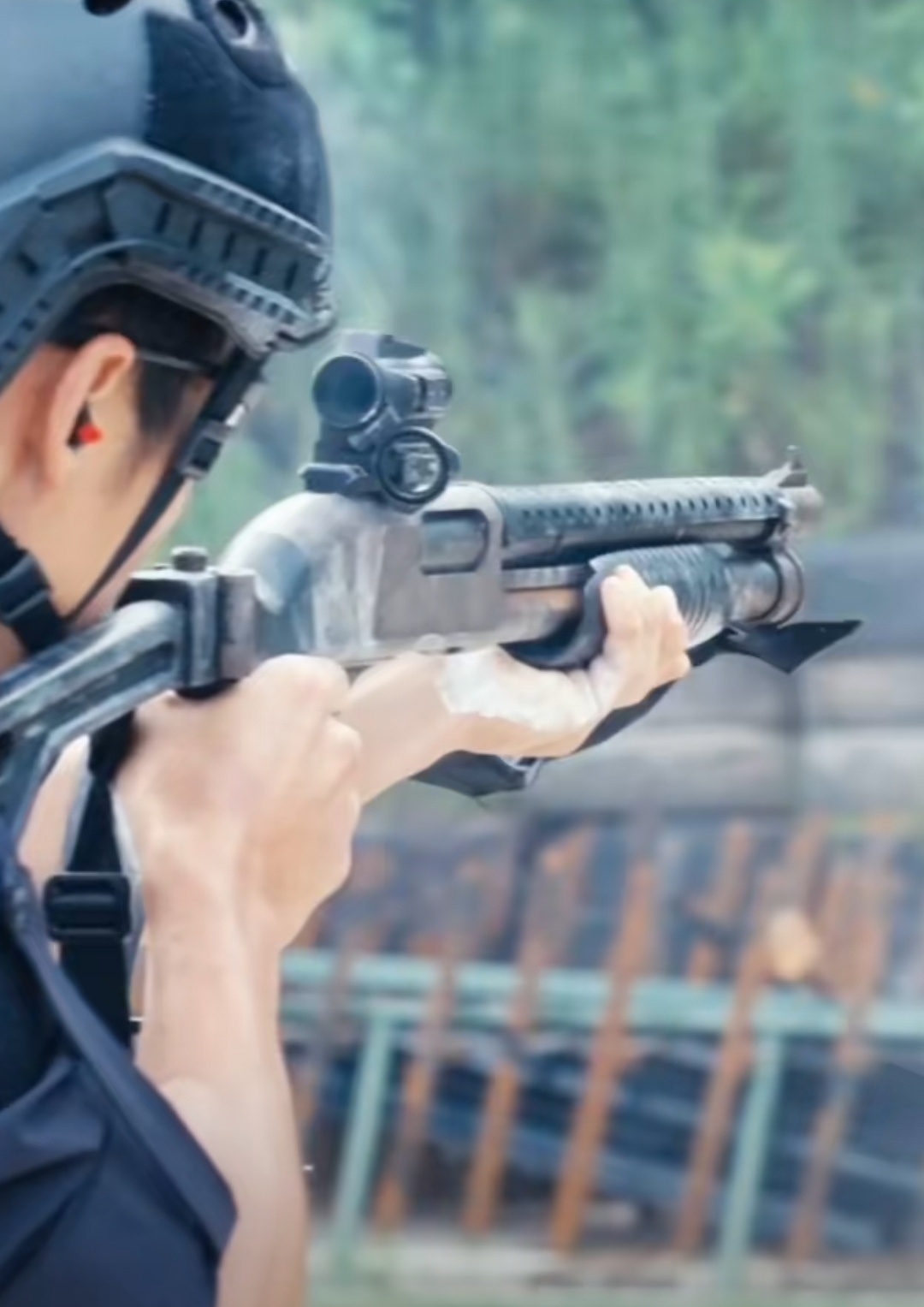 97防暴枪加装近战瞄具,好看咧。这适配后机瞄的皮轨条替换件应该正经厂家的产品,不是自家土改。