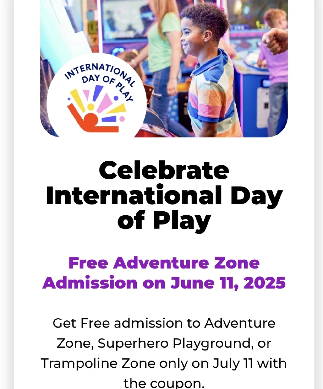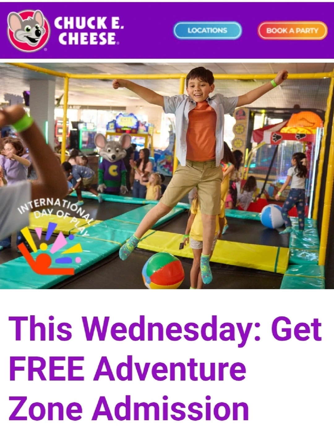 本周三6月11日 ChuckECheese的蹦床区、冒险乐园区、小娃playground 免费玩哦!🥰