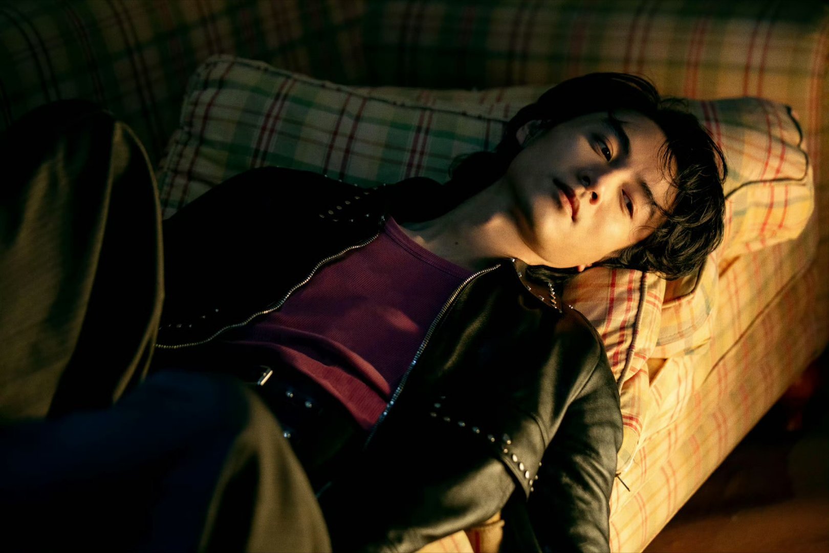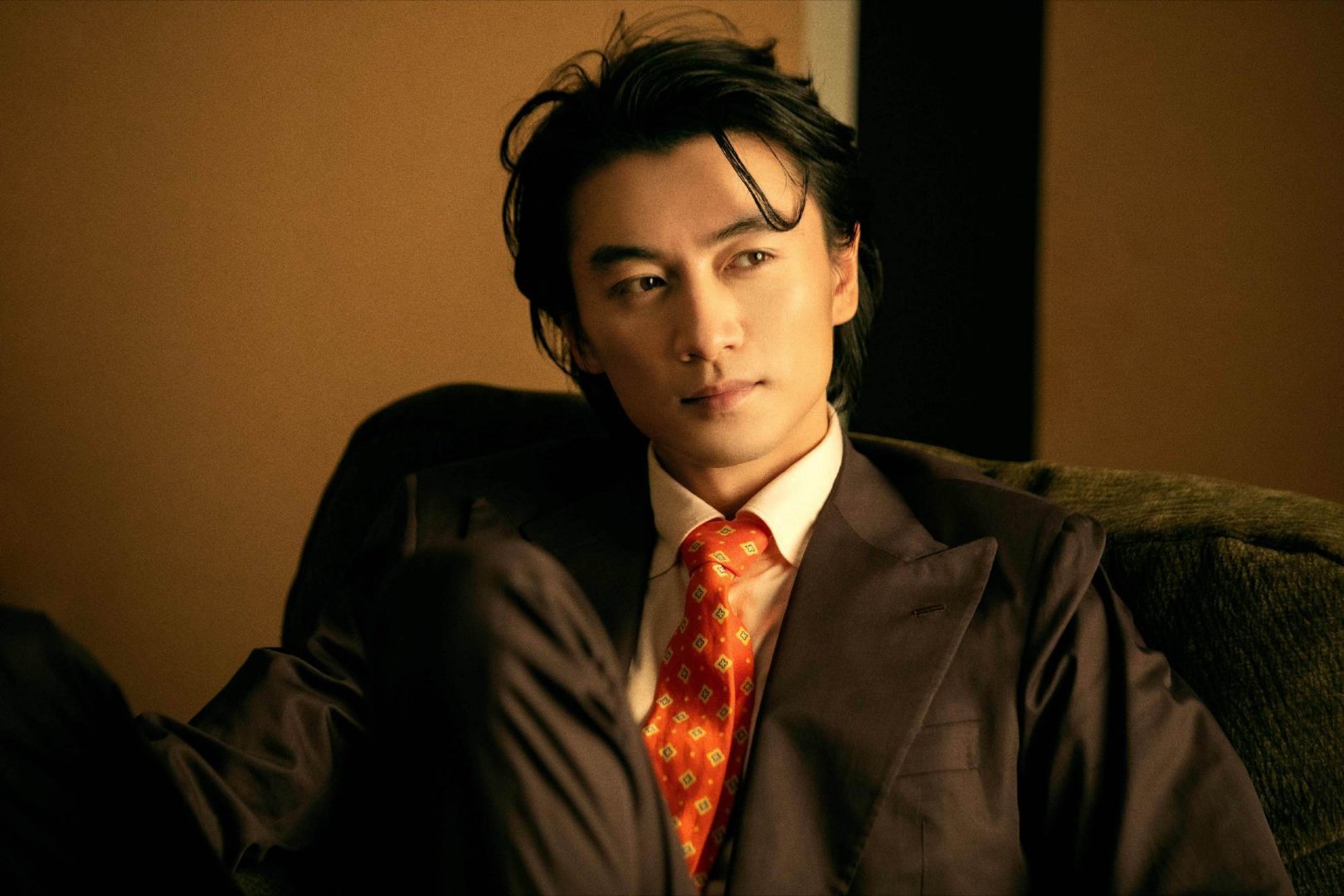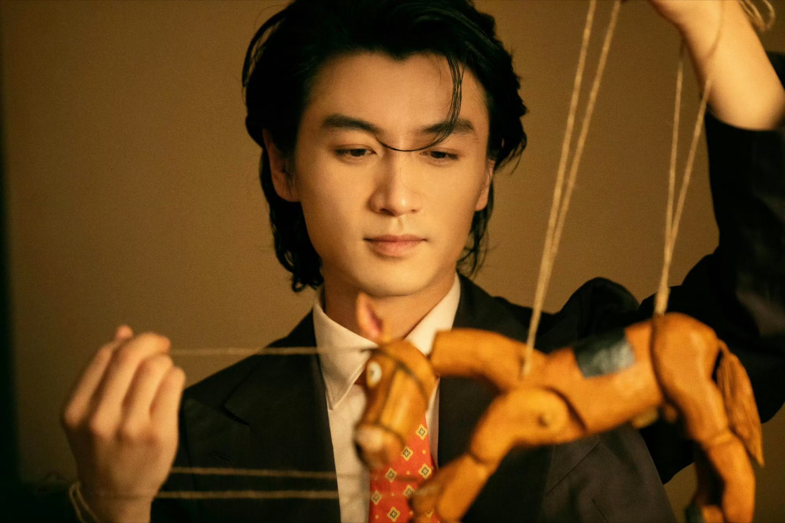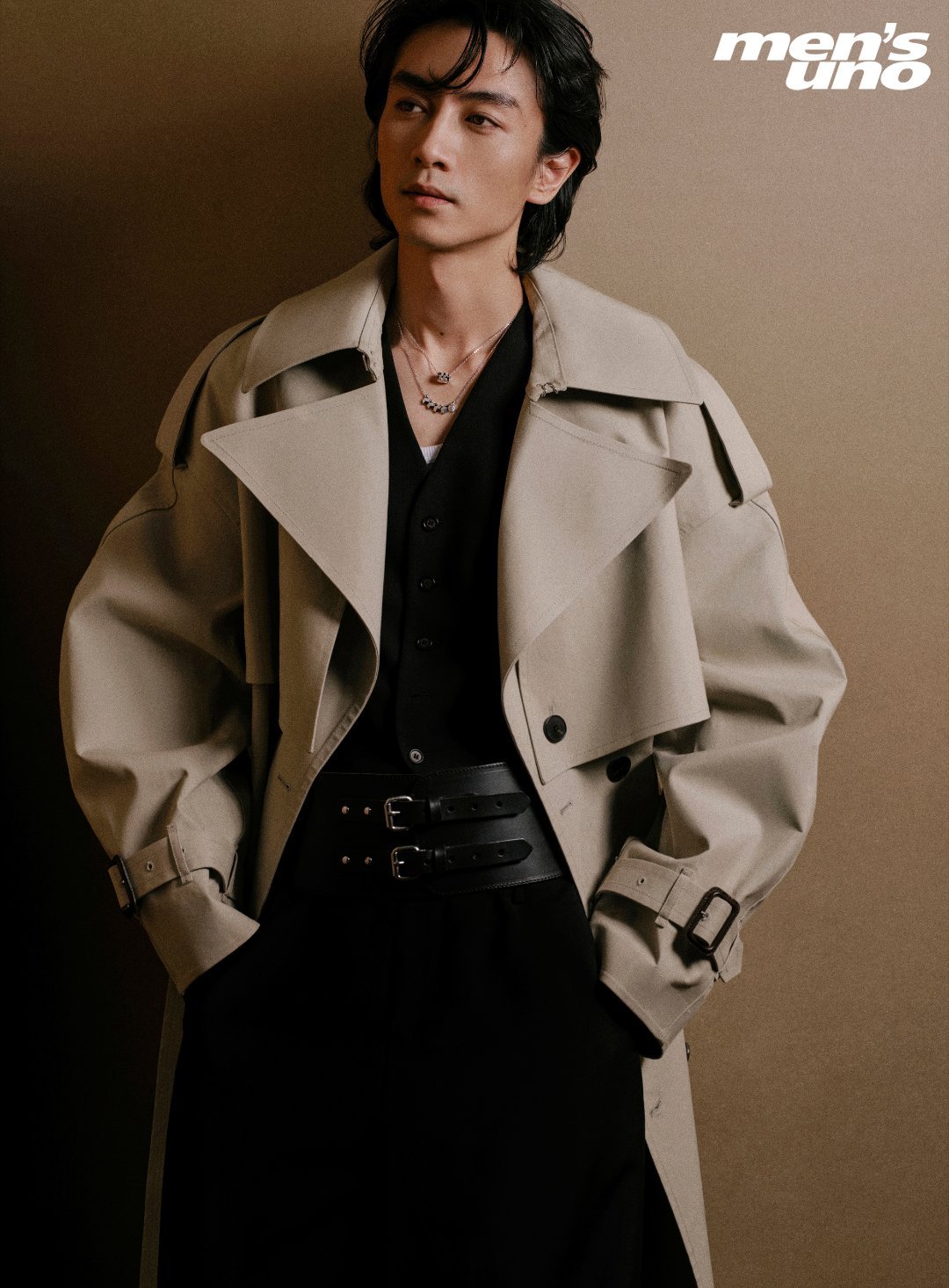 他身着解构式黑色西装,内搭金属光泽衬衫,侧身立于纯白背景前,眼神深邃而克制。那下颌线的阴影被光影雕刻得如雕塑般精致,在古典英气与现代慵懒间找到了精妙平衡。他似是从时光深处走来,于静谧中蕴含着爆发的力量,演绎着属于自己的时尚传奇。陈晓马年松弛启程大片陈晓风度开年封面