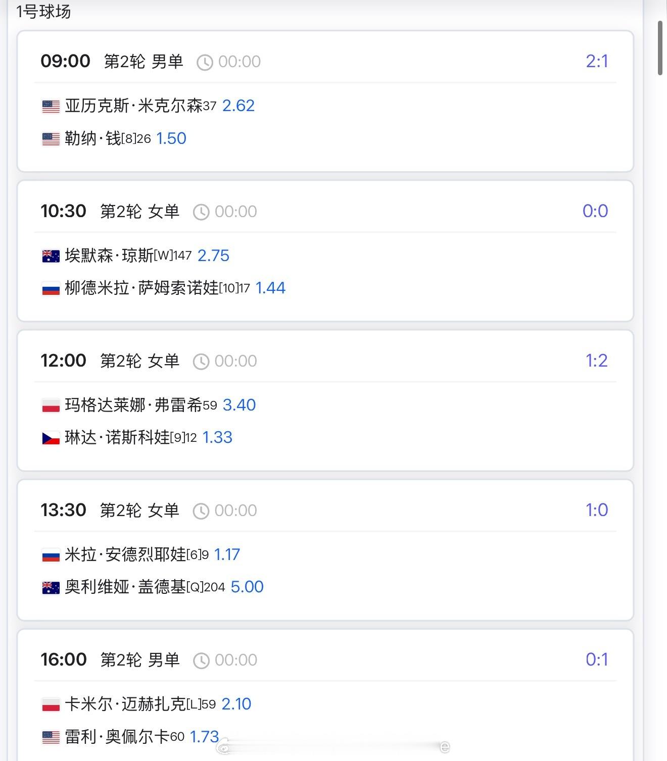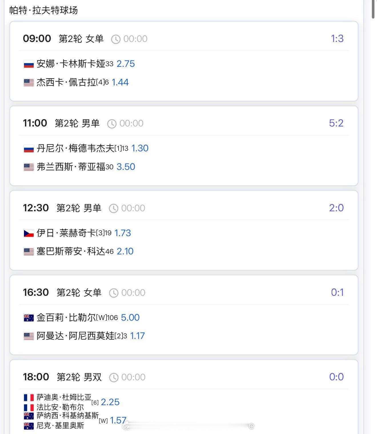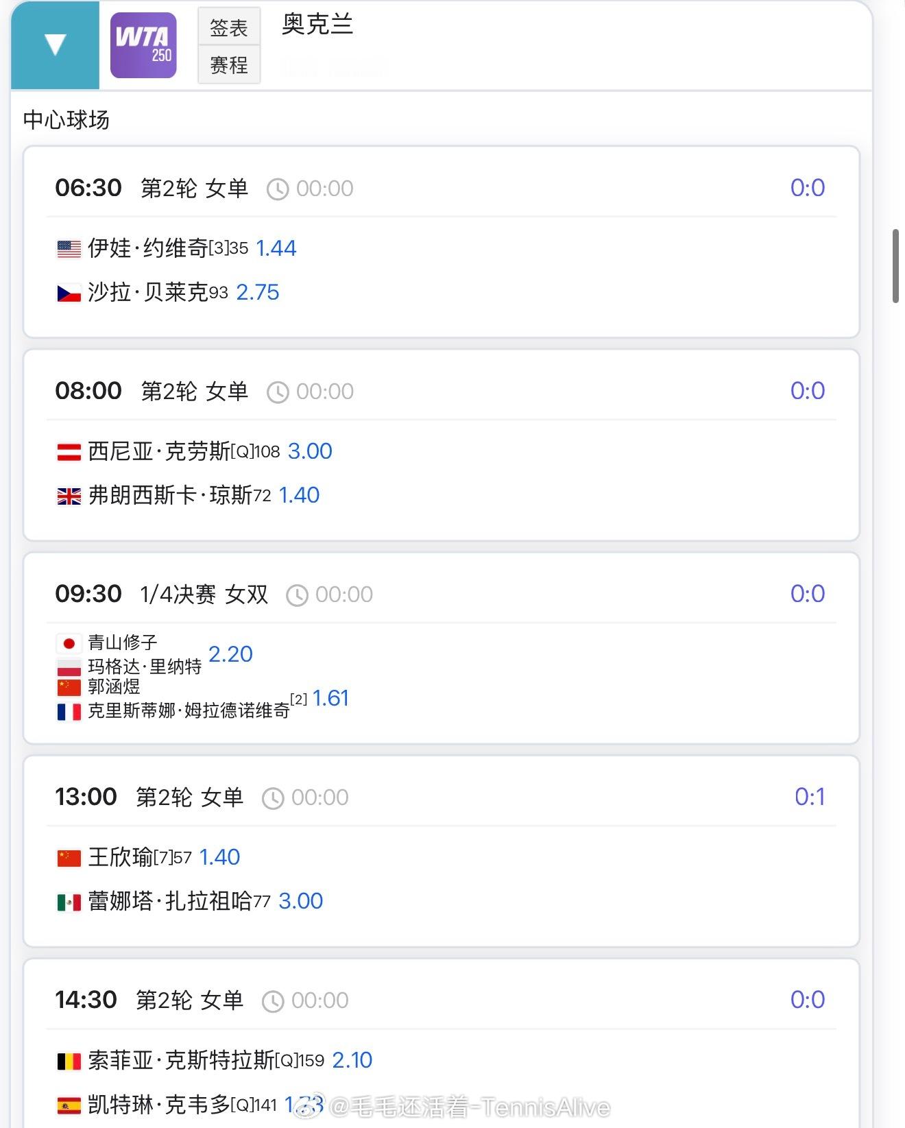 【1月7日比赛赛程+直播赛程】9:30 斯瓦泰克 vs 拉门斯10:00 高芙 vs 萨卡里12:00 弗里茨 vs 西西帕斯13:00 萨巴伦卡/巴多萨双打13:00 王欣瑜 vs扎拉组哈15:30 黄泽林 vs 迪亚洛16:00 袁悦 vs普罗佐罗娃17:18:00 吴易昺 vs 卢布列夫