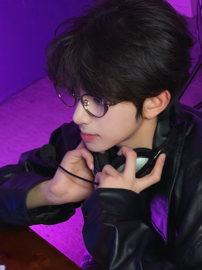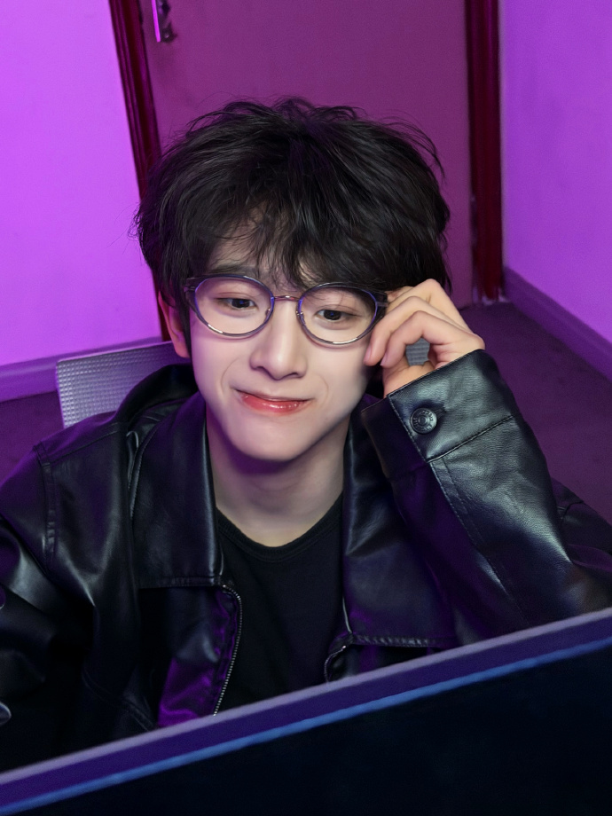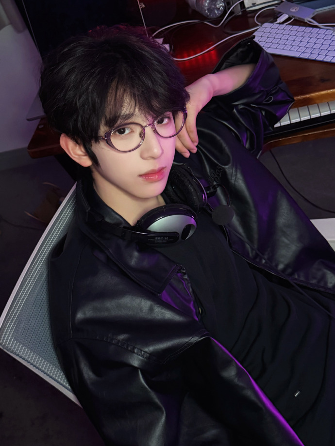 陈浚铭电竞少年 陈浚铭电竞少年酷帅反差萌拉满黑色皮衣+黑框眼镜好帅!浅笑甜度超标陈浚铭黑框眼镜