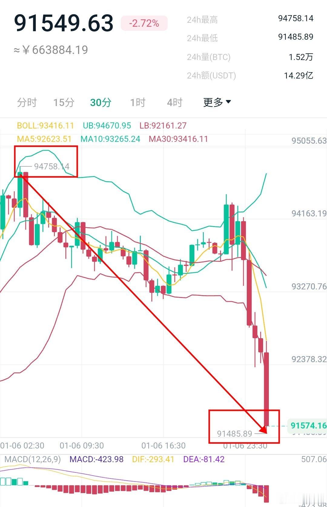 近期围绕委瑞局势的影响下,比特币稳固上行,凌晨阶段一度冲击9.47万一带承压回落