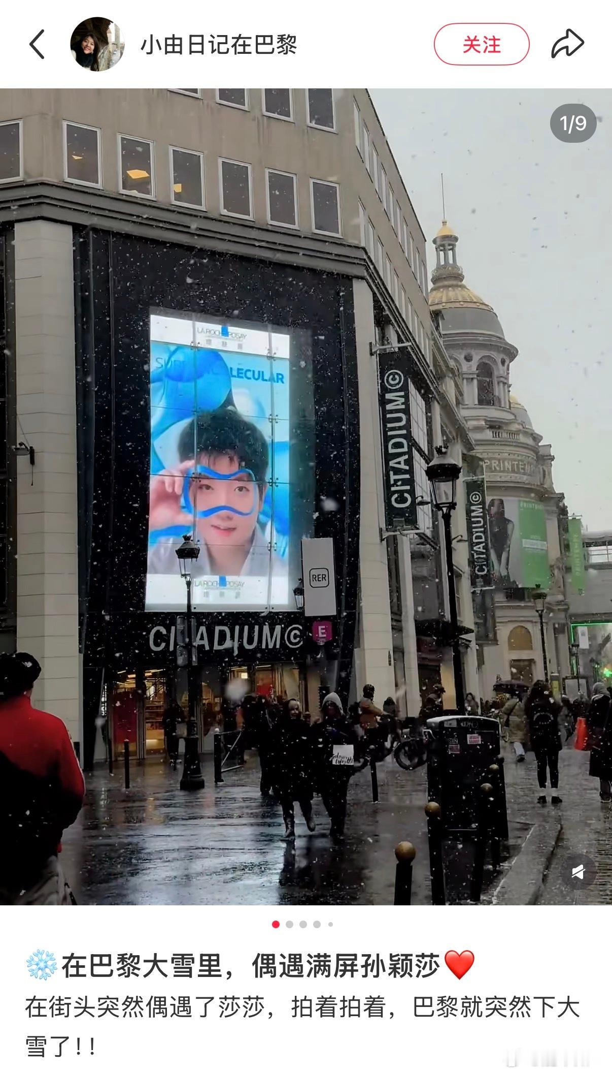 孙颖莎理肤泉品牌代言人及全球合作伙伴巴黎街头的小莎好有氛围啊❄️