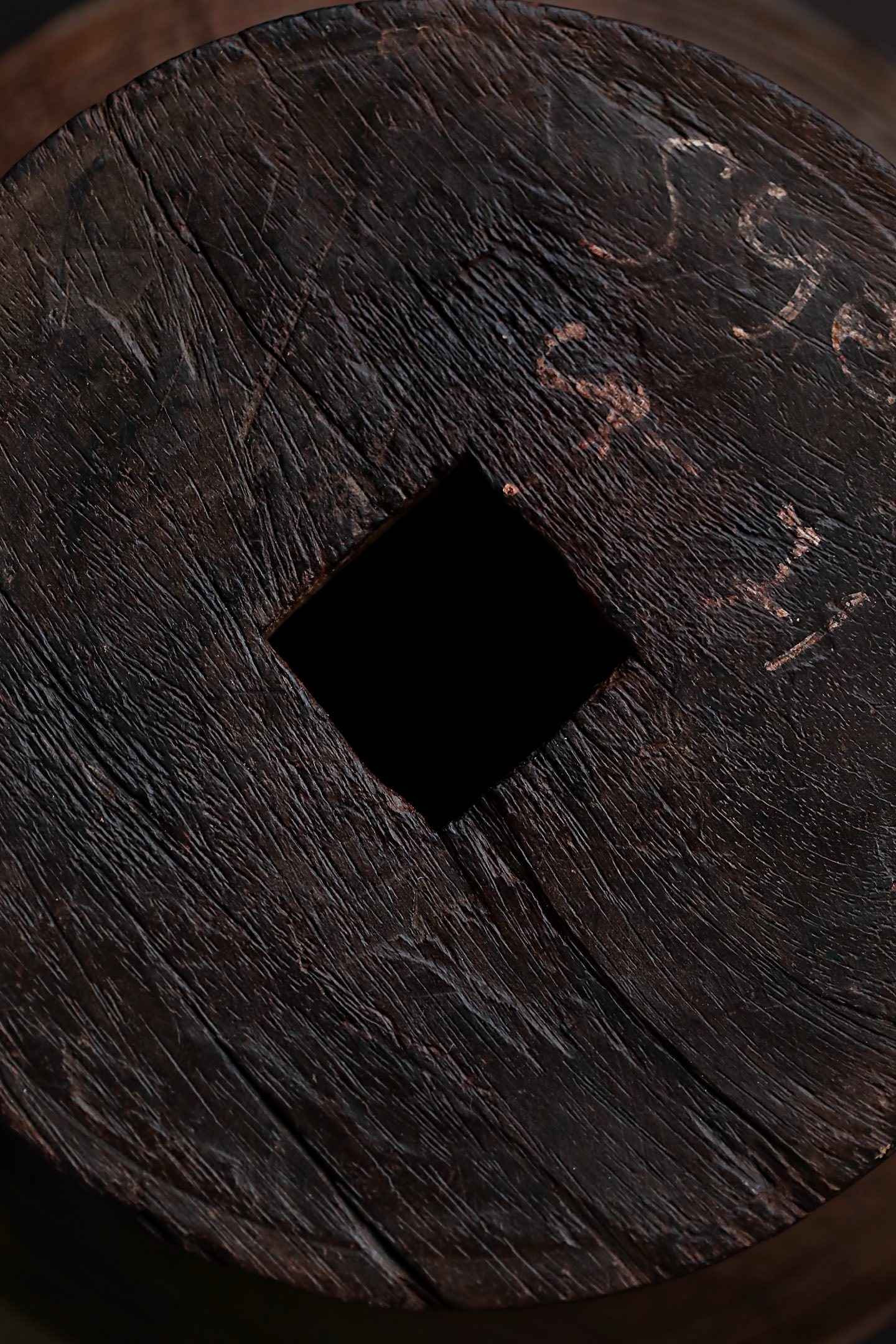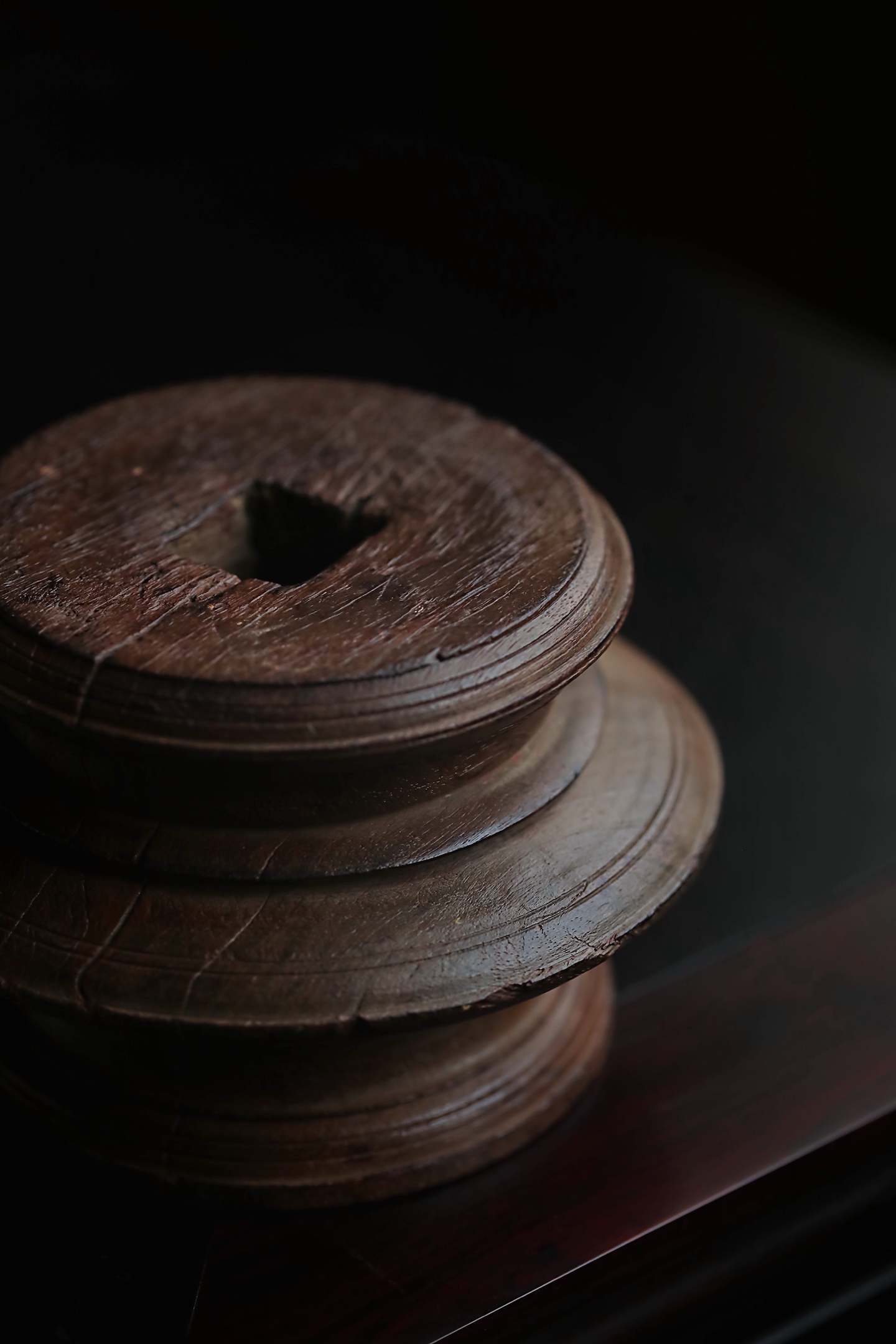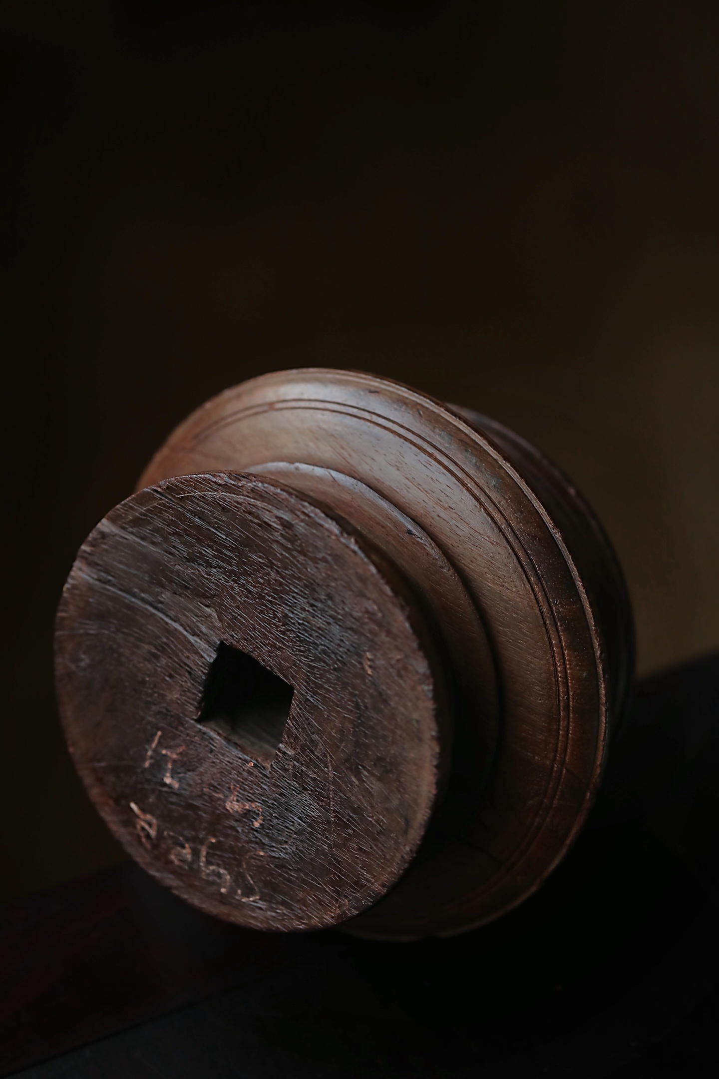 小叶紫檀|飞碟🛸底座拆房老紫檀风化皮沙。外圆内方,妙趣天然。文心气韵,清净