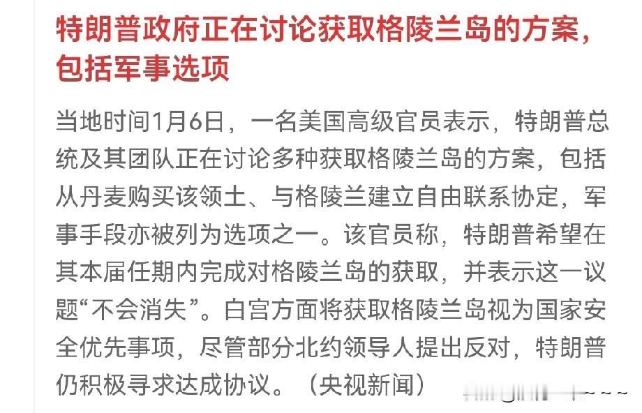 一大早,真为丹麦捏了一把汗?[捂脸] 就在刚刚,特朗普政府已经讨论了获取格陵兰岛的方案包括军事选项。 也就是说不管是什么选项,格陵兰岛不拿下,特朗普政府就死不了心,特朗普政府就没有光亮政绩,特朗普政府的子孙后代可能就少了很多资源,当然也是为了MAGA们… 毫无疑问,丹麦看了特朗普政府获取格陵兰岛的方案,能不担心吗?就连欧洲都替他们担心,要不欧洲主要国家也不会紧急发布一个联合声明说格陵兰岛属于其人民啊! 为此,接下来要看丹麦政府能拿出什么绝佳方案来应对了,此刻美国的飞机正在大批量飞往欧洲,有点兵临城下的感觉,不知道是不是针对丹麦政府施压,但是,这是极其不寻常的动作。