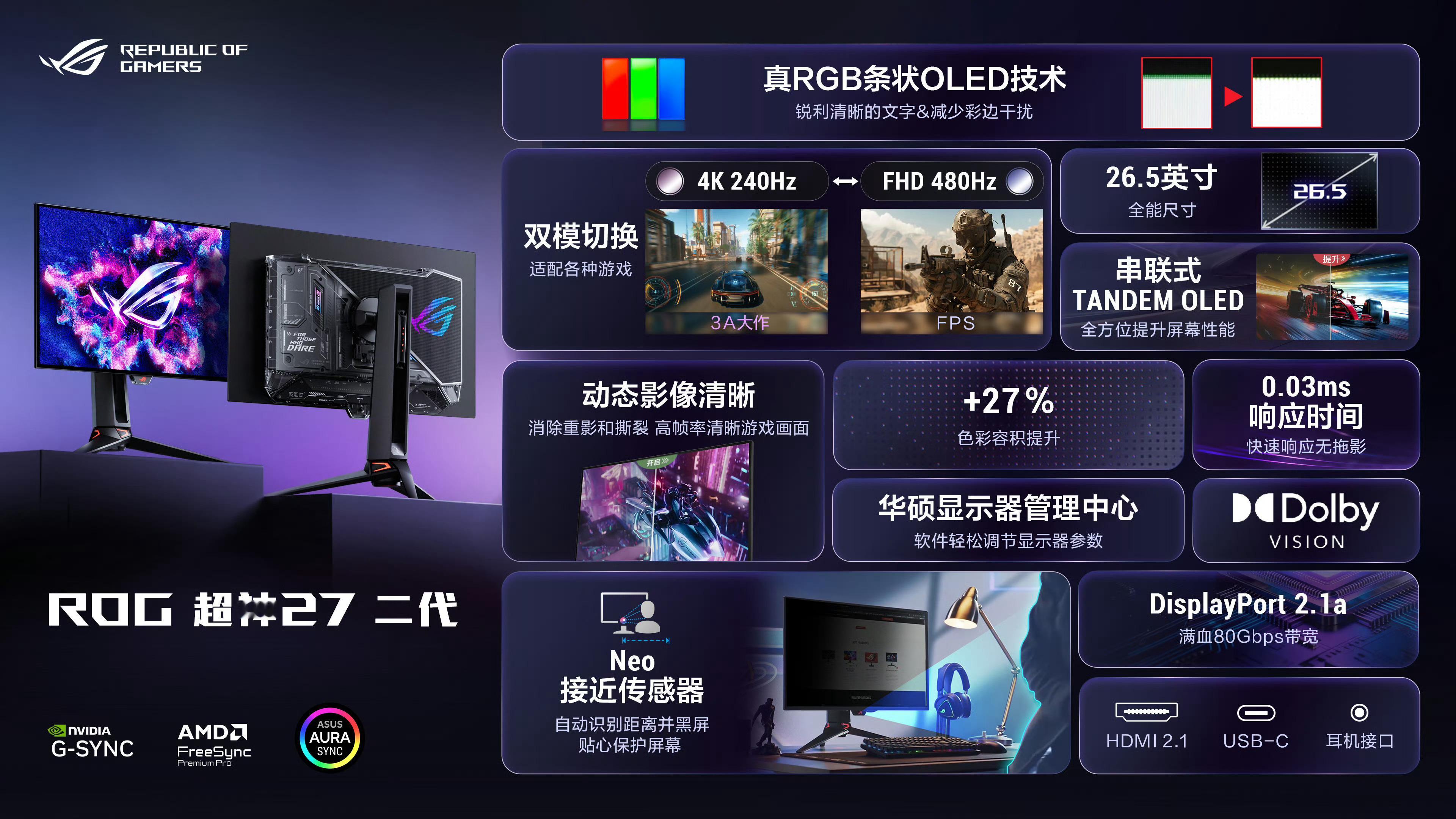 CES2026 ROG 这次真的是把家底都掏出来了。看完一圈新品,除了刚刚发微博介绍过的 PC 和 笔记本产品外,还有很多新品。比较心动的是那个“超神27二代”显示器,搞了个双模切换:想玩3A就用4K 240Hz,想打FPS竞技就切成1080P 480Hz。这对双修党来说简直是福音,不用再纠结买哪种屏了。还有那个AR眼镜也挺有意思,能投出170多寸的虚拟大屏,接掌机玩游戏应该很爽,妥妥的差旅神器。DIY这边,ROG终于出了自己的“海景房”机箱,自带屏幕这波操作很符合ROG的调性。配合新的积木风扇和无线水冷头,装机难度降了不少,理线强迫症表示很舒适。板子方面,新的X870E系列依旧堆料满满,特别是那块纯白Glacial,颜值确实能打,估计又要成为理财产品了。总的来说,ROG这次不仅是在堆参数,更多是在解决实际痛点,比如双模显示和无线化装机。虽然价格估计还是会让钱包“瘦身”,但不得不说,这波信仰充值看着确实有点香。