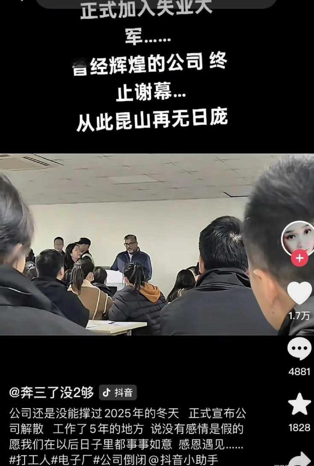 最近看到个视频,看得心里挺不是滋味的。昆山一家叫日庞电子的日资公司,突然就宣布解散了。视频里,员工们安安静静听着通知,好多人都红了眼睛,有人偷偷抹泪。那场面,没什么吵闹,反而是一种说不出的难过。 这家公司在昆山待了二十多年了,01年就来这儿了,做的是笔记本、通信设备电源这些精密零件。名字不大,但装了不少人的青春。没想到,这都2025年年底了,它就这么静悄悄地关门了。 但最让人心里一动的,是它关门的方式。不赖账,不扯皮,该给的N+1补偿,爽爽快快地结清了。还给每个员工额外准备了张购物卡,算是一点临别心意。钱可能不算特别多,可这份干脆和念着旧情的意思,在现在这光景里,真的挺难得的。 “跟了公司十几年,没想到最后是这样走的……”一个老员工说着说着声音就哑了。这哪只是丢了份工作,更像是一场体面的告别。就算流着眼泪,心里也多少是暖的。 看看现在,大环境不好,多少公司为了活下去愁得不行。裁员、降薪、放无薪假,都快成家常便饭了。竞争激烈,活儿又变少,逼得再大的公司也得收紧口袋。跟那些老板连夜跑路、工资都没着落的新闻一比,日庞这么干,真算得上一股清流了。 当然了,你要说它跟当年中山佳能那种“壕无人性”的补偿比,那肯定是比不了。可比起太多一拍两散、冷冰冰的公司,它能按规矩把该给的给了,还额外添上一点人情味,就已经赢了很多好感。难怪有网友说,这算是“体面退场”的典范了。 这年头变得太快了。真的说不准,明天又是哪家公司突然就没了。咱们打工人的那种踏实感,是越来越稀罕了。能按时发工资、不胡乱裁人的地方,都算得上“福报”了。如果你现在正待在这样的地方,真的得珍惜,因为光是“安稳”这两个字,现在就已经很金贵了。 散了伙,终究是伤感的。但能带着尊严和一点温暖离开,可能就是最好的安慰了。希望所有不得不“毕业”的朋友,都能早点找到新奔头;也希望更多的公司,就算在难的时候,也能守住那份该有的责任和人情味儿。
