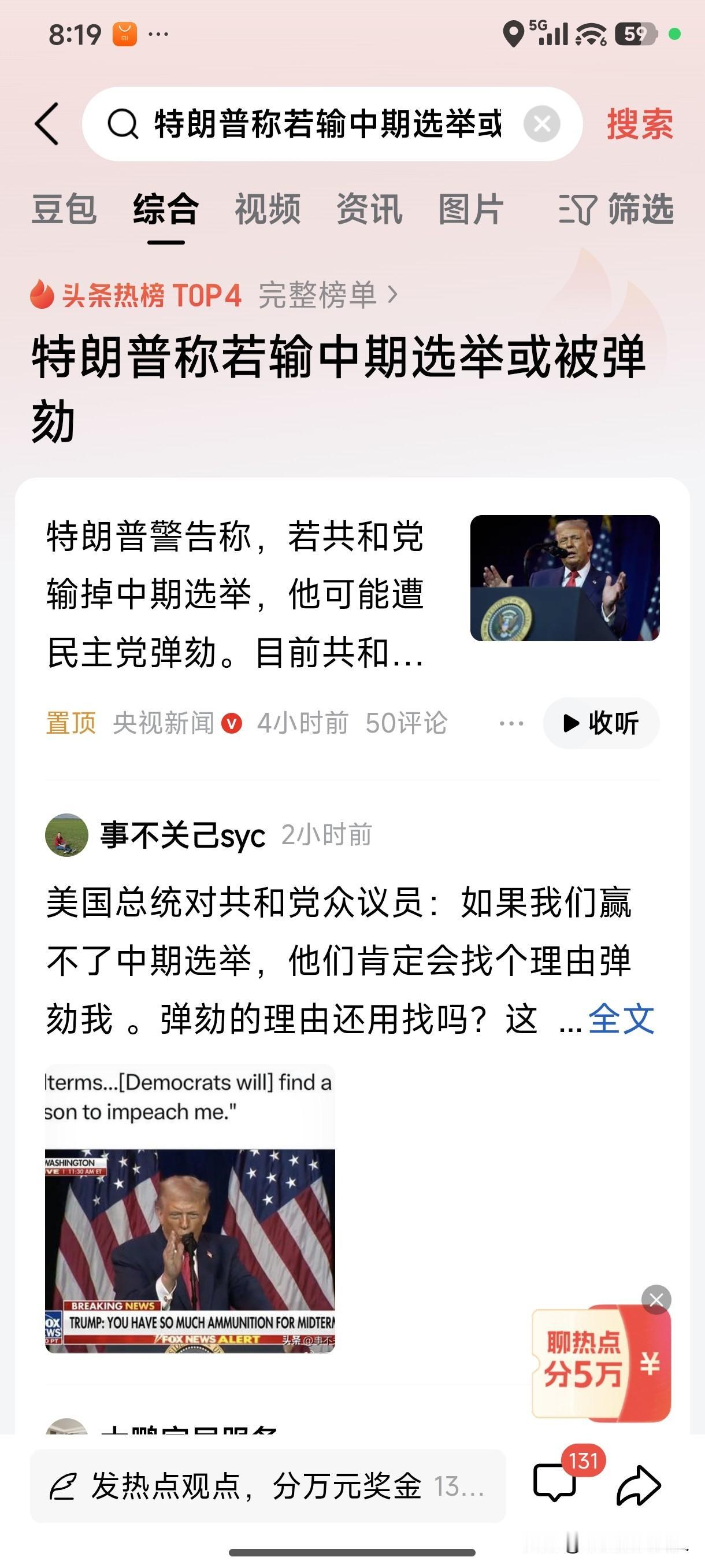 特朗普称:我可能被弹劾! 当地时间1月6日,美国总统特朗普称,他所属的共和党必须赢得今年国会改革、即中期选举。否则他可能遭到民主党人弹劾。 不得不说特朗普这个人很聪明,很有自知之明。他知道自己做的事儿得罪了很多人,自己当前面临的形势很糟糕,可以说已到了“天怒人怨”的程度。特朗普自己的预言很大程度上会成真!