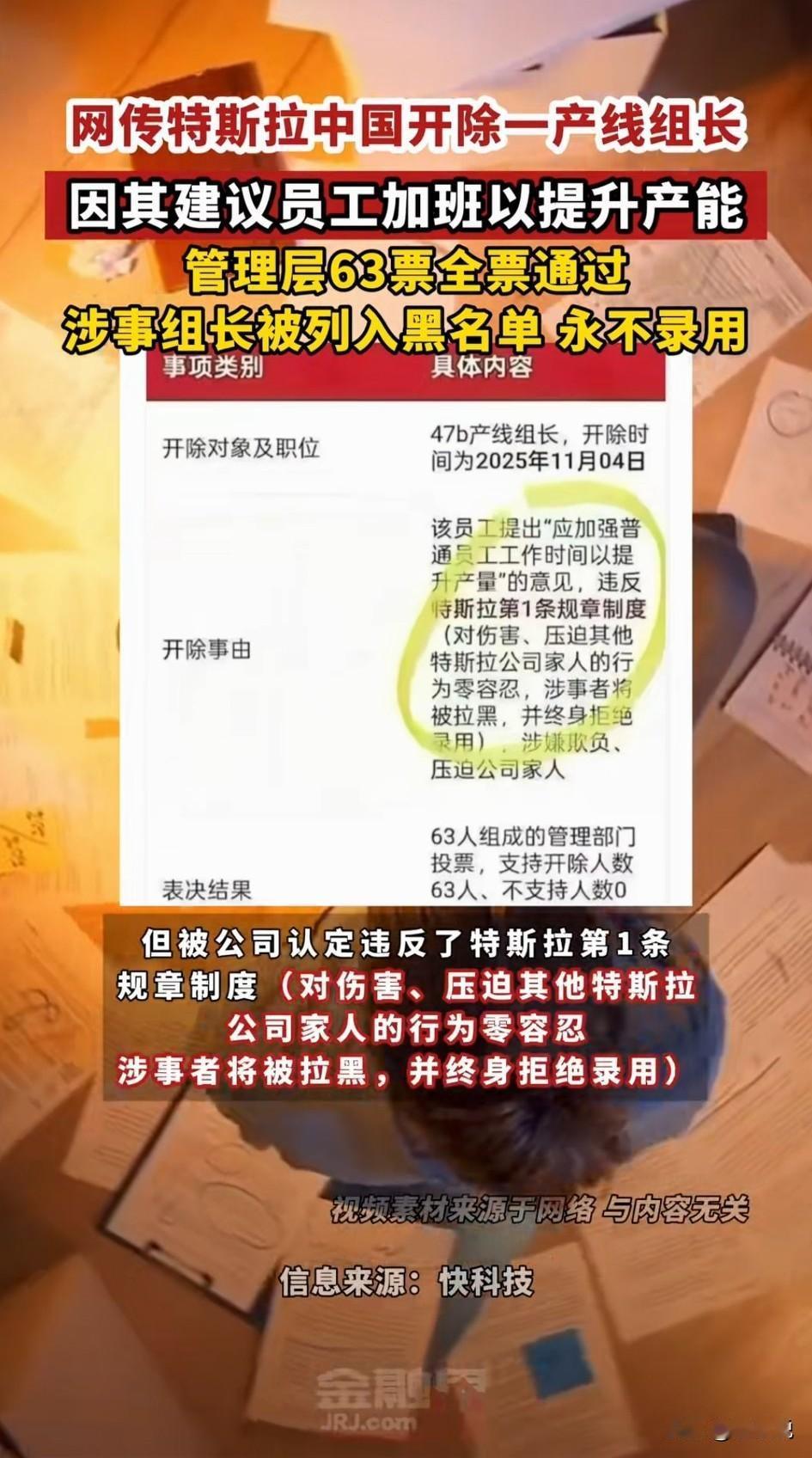 这是典型的因言获罪,但却让所有打工人叫好,并且又多了一个想去外资公司的理由。 特斯拉近日开除了一位产线组长,就因为他建议“员工加班,提升产能”。 这如果在国内任何一家公司或者工厂,组长必须表扬,甚至加薪升职。 外资果然还是没适应国情,竟然把这么优秀,一心为公司考虑,以公司为家的好员工给开除了。 更离谱的是,他并没有决定权,只是提个建议而已,典型的“因言获罪”,就是不知道告到劳动局,会不会获得赔偿。 这样搞,还有谁敢为特斯拉拼命。