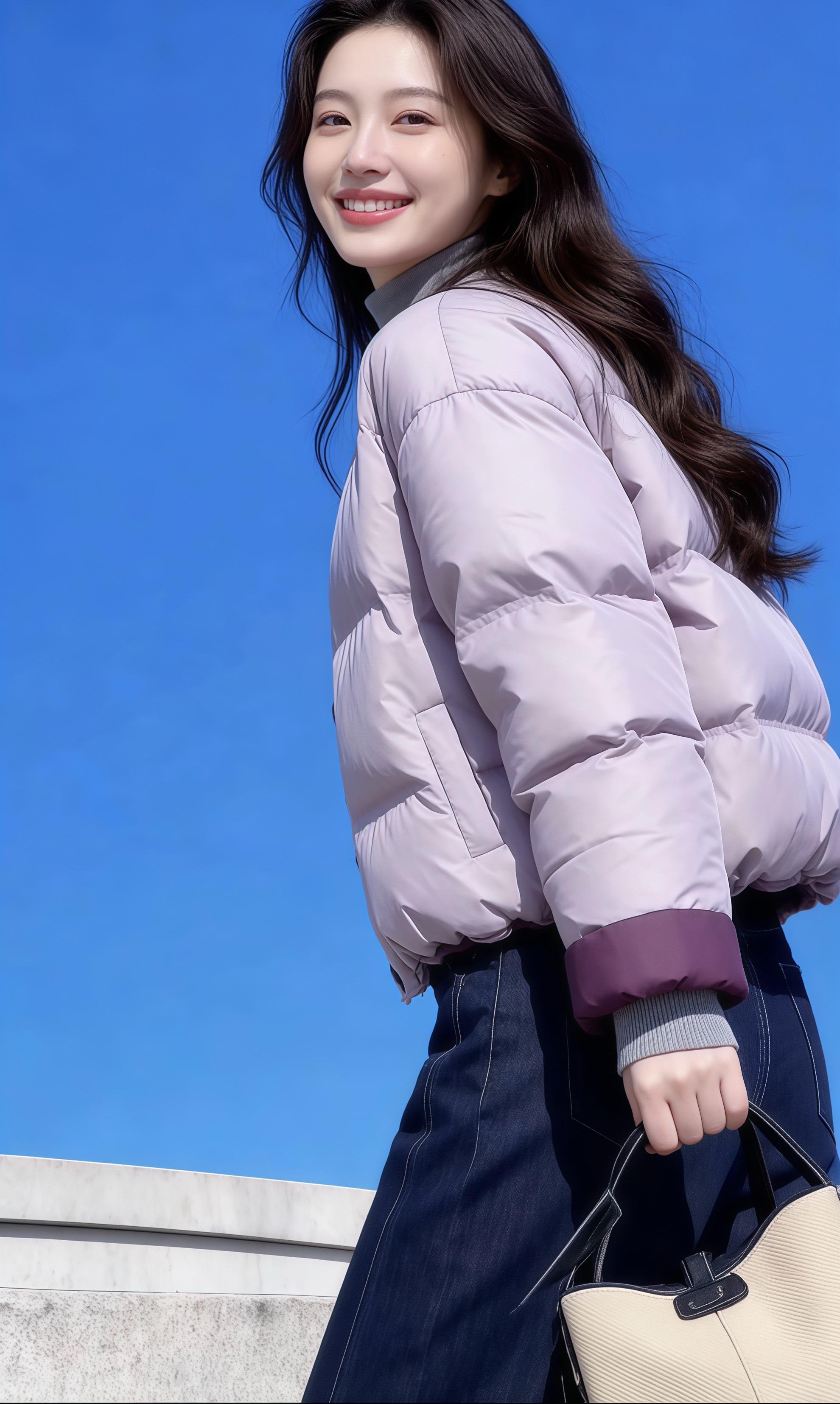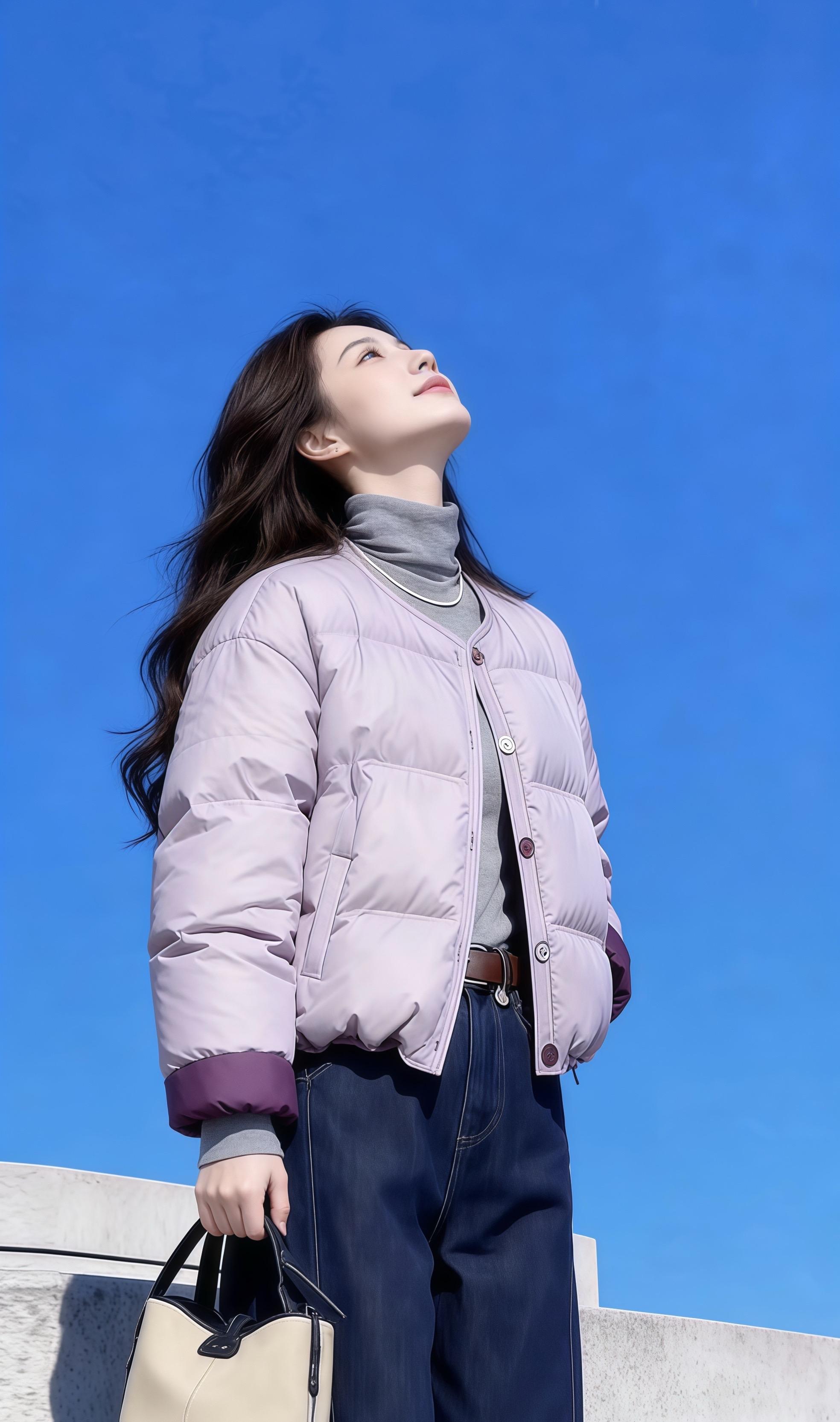 有气质的穿搭是怎么样的冬日暖阳下,温柔笑容与毛绒大衣相映成趣。