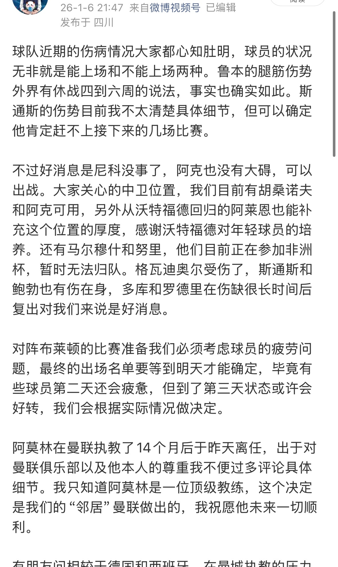 啊‼️今天瓜因为个人原因没有出席曼城对阵水晶宫的赛前新闻发布会,是由科洛·图雷代