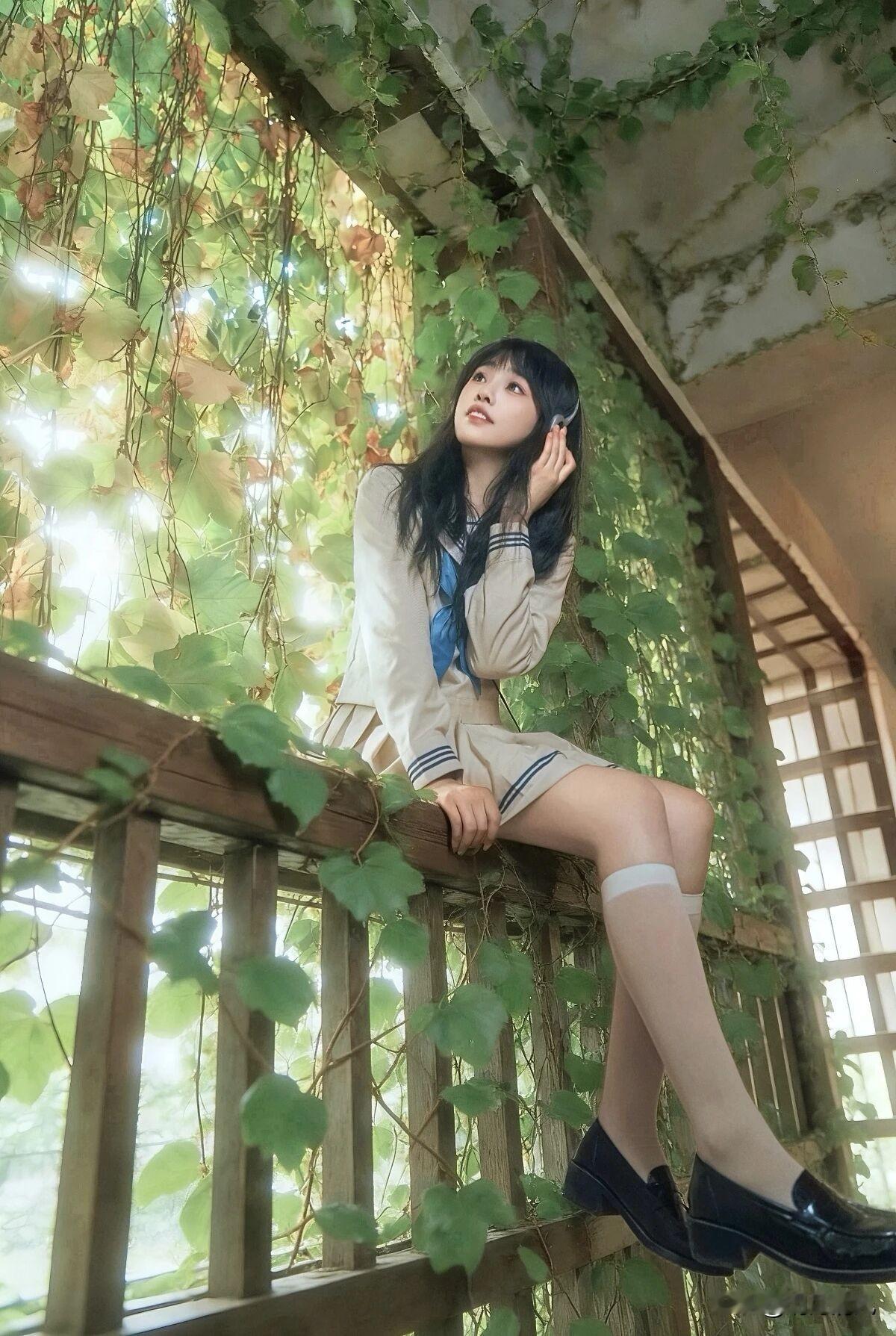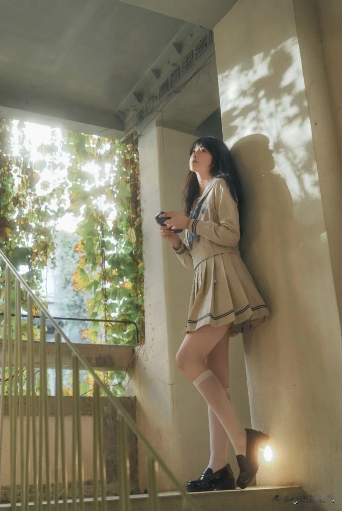 原来JK拍照也可以这么有故事感!最近拍了一组图,发现秘诀居然是,加一片绿植。 爬满藤蔓的老墙,阳光透过叶子漏下光斑,女生穿着浅色制服坐在那儿,或低头翻书,或靠着楼梯发呆。没有刻意摆拍的感觉,倒像是偶然路过抓拍的瞬间,那种松弛的青春气特别动人。 我原本觉得JK制服拍照容易显得重复,但这组让我改观了。绿植和老建筑的搭配,一下子把画面从“标准写真”拉进了“有温度的日常”。植物带来的生机感,中和了制服的规整;斑驳的光影,又添了几分时间流淌的痕迹。 其实拍照真的不必执着于完美布景。身边那些有年代感的楼梯、墙角,甚至一盆茂盛的绿植,都可以成为最好的背景板。关键是把人放松的状态融进去,让场景和人产生自然的互动。 你们试过用植物当拍摄道具或背景吗?有没有哪个“不起眼”的角落,被你拍出了意想不到的氛围?来分享你的取景心得吧~