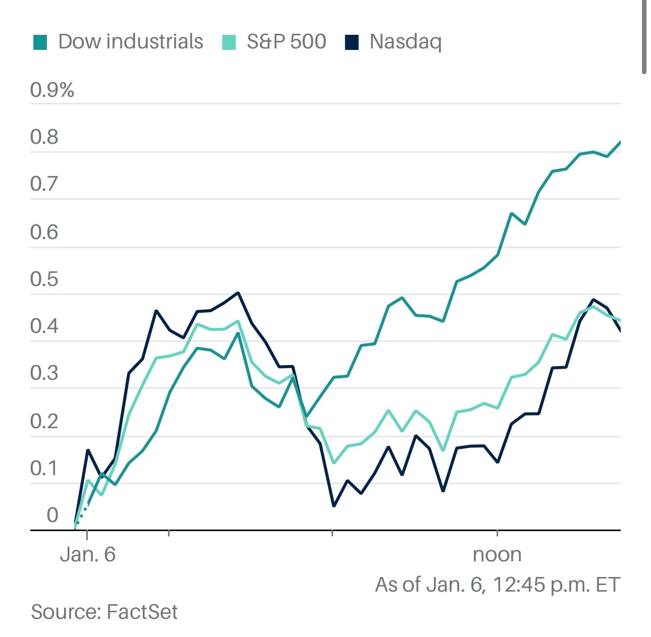 美股美股 今年以来美股道指数领跑。周二早盘道指涨0.7%,周一刚刚创下历史收盘新高。标普500和纳指数都涨了0.4%。截至目前,道指今年累计上涨2.6%。标普500上涨1.2%,纳指上涨0.9%。道指走势有时会显得不稳定,因为是按股价加权,而非按市值。这意味着高价股如高盛集团或联合健康集团的波动,对指数影响更大,而英伟达等市值巨头的影响则相对较小。正是如此,周一金融股如高盛推动道指创下历史新高。这一趋势在周二仍在延续,华尔街目前偏好材料和医疗板块。虽然部分科技股仍在上涨,但那些高估值的大型科技股走势较为混乱。这也让道指在年初暂时领先。(巴伦)为海外华人提供有价值的信息与分析,更多内容和全文可在蓝天、电报、x查找causmoney,或直接谷歌搜索caus.com