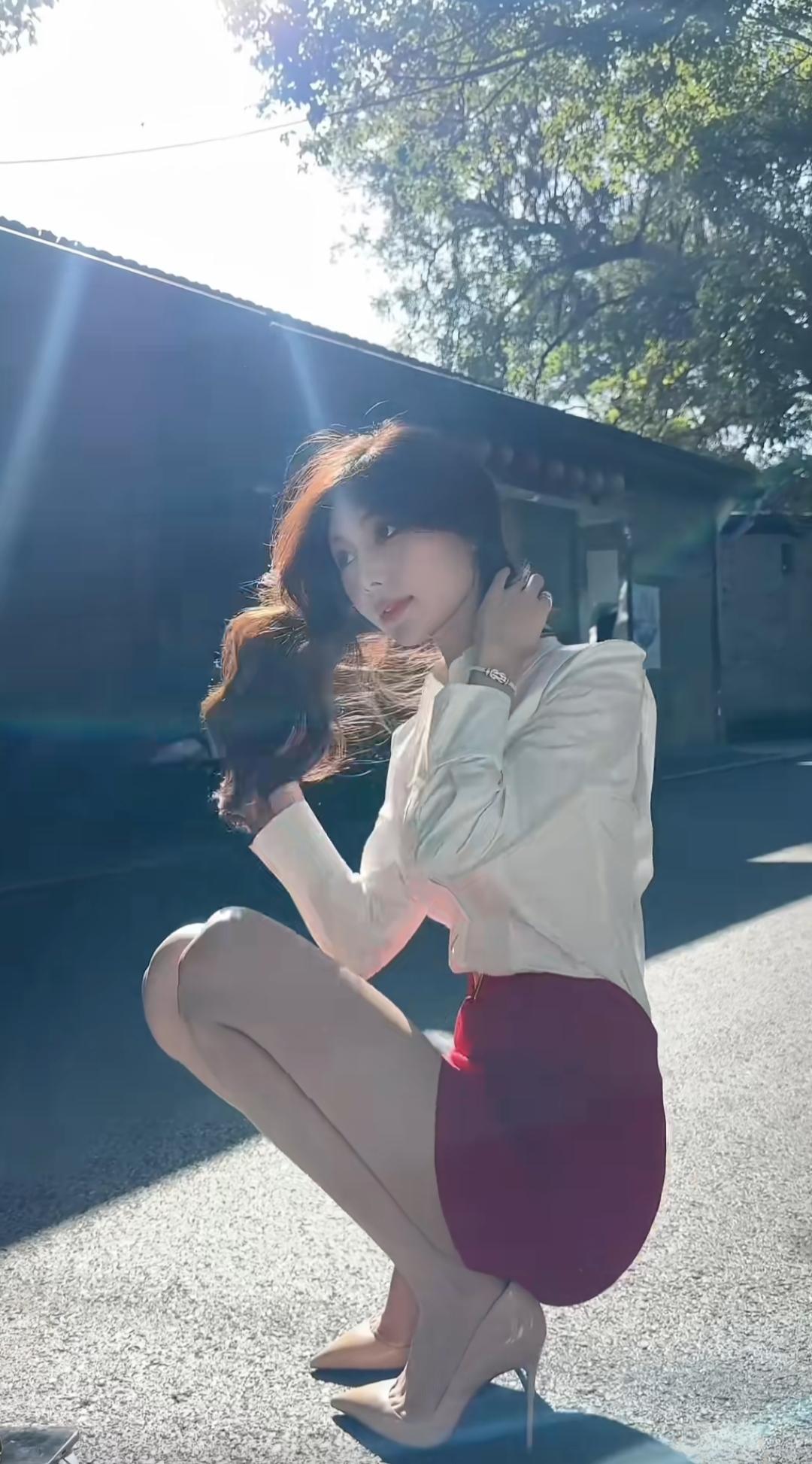 小皮裙、大波浪,丝袜、高跟都穿上。一扭一晃像不像样?