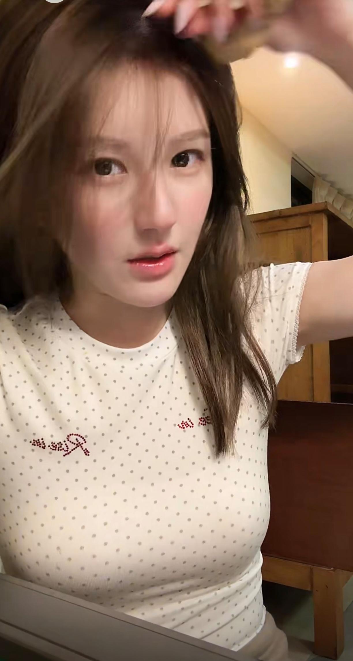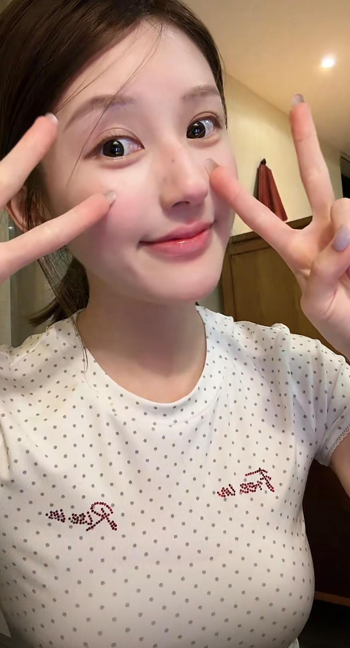 蔡文静这机场私服也太会了吧!露肩毛衣小露香肩,又纯又欲的feel拿捏得刚好,波点