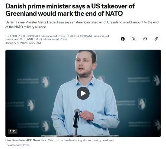 豪言壮语!当地时间1月5日,丹麦首相弗雷泽里克森,如果美国吞并格陵兰岛,将意味着北约和二战体系的终结。 这话不是随口说说,每一个字都带着对霸权的反抗,也戳中了国际社会最关心的安全痛点。 要知道,美国和丹麦可是北约里的盟友,按道理说,盟友之间本该相互尊重,可特朗普政府的表态,完全没把这份盟友情分放在眼里,此前他在多个公开场合提到格陵兰岛,说这个岛“战略意义重大”,美国必须拿到手。 有记者追问“是否会用武力手段”,特朗普没有直接否认,只是含糊其辞地说“所有选项都在考虑范围内”,这种模棱两可的回应,在国际政治里就是赤裸裸的威胁,也难怪丹麦会如此强硬地反击。 弗雷泽里克森还特意提到,丹麦和美国早就签了防务协定,这份协定已经给了美方进入格陵兰岛的广泛权限,言外之意很明显,美方的需求已经得到满足,再提吞并就是得寸进尺,完全没道理。 可能有人会好奇,格陵兰岛到底有什么魔力,能让美国如此惦记,这个岛可不简单,它是世界第一大岛,位于北美洲东北部,虽然是丹麦的自治领地,但有高度的自治权,国防和外交事务还是由丹麦政府掌管。 从战略位置来看,格陵兰岛就是个天然的地缘要地。它扼守着北大西洋和北冰洋之间的航道,是北约反潜作战体系里“格陵兰-冰岛-英国缺口”的关键一环,不管是冷战时期还是现在,这里都是监控北冰洋洋面动态的重要支点。 资源方面更是块“肥肉”。格陵兰岛底下藏着丰富的稀土、石墨、铜、镍等矿产,这些资源都是现在能源转型、芯片制造的刚需,随着全球变暖,岛上的冰层融化,这些资源的开采难度也降低了,吸引力自然越来越大。 还有北极航道的潜力,随着气候变暖,北极航道未来可能成为连接北美和欧洲的最短航线,商业价值和战略价值都不可估量,谁能掌控格陵兰岛,就相当于在北极事务里拿到了重要的话语权。 其实美国觊觎格陵兰岛,早就不是新鲜事了,早在上世纪四十年代,杜鲁门政府就曾向丹麦提出,想用价值1亿美元的黄金,再加上阿拉斯加州部分油田的开采权,来换取格陵兰岛,不过当时丹麦直接拒绝了这个提议。 后来到了1951年,美国还是没放弃,和丹麦签了防务协定,在格陵兰岛西北部建了图勒空军基地,现在改名叫皮图菲克太空基地,一直驻军到现在,从冷战时期开始,这里就成了美国对苏核攻防战略的重要支点。 说到丹麦,很多人会想到它在二战时期的一段历史,当时德军入侵丹麦,丹麦从抵抗到投降,只用了4个小时,这段历史也让不少人质疑,这次丹麦首相的强硬表态,能不能坚持到底。 但这次的情况和二战时期完全不同,现在的丹麦是北约成员国,背后有整个联盟的安全框架支撑,更重要的是,美国的企图是吞并盟友领土,这种行为本身就违背了北约的基本准则,很难得到其他成员国的支持。 目前国际社会虽然还没大规模表态,但不少分析人士都看得很清楚,要是美国真的无视规则,对格陵兰岛动武,北约内部必然会分裂,很多欧洲国家本来就对美国的霸权行径有不满,这件事很可能成为导火索。 对格陵兰岛来说,虽然有高度自治权,但国防和外交掌握在丹麦手里,当地民众对美国的驻军本来就有不少争议,之前还多次出现过要求美军撤离的呼声,美国的吞并企图,只会让当地民众更反感。 特朗普政府之所以这么执着于格陵兰岛,说白了还是想靠控制资源和地缘要地,巩固美国的全球霸权,尤其是在能源转型的关键时期,掌握稀土等核心资源,就能在科技和工业领域占据优势。 可霸权之路从来都走不通。现在的国际社会,早已不是谁拳头硬谁说了算的时代,尊重各国的主权和领土完整,是联合国法律的基本准则,也是维护国际秩序的根基,美国要是执意打破规则,最终只会遭到全世界的反对。 丹麦首相的强硬表态,不仅仅是为了捍卫本国领土,更是在维护整个国际体系的公平与正义,每个国家的主权都该被尊重,不管是大国还是小国,都不该被强权随意拿捏。 希望美国能认清形势,放弃那些不切实际的霸权幻想,和盟友好好相处,遵守国际规则,才是长久之道,要是继续我行我素,只会让自己在国际上越来越孤立,最终自食恶果。 大家对此有什么看法呢?欢迎各位在评论区留言!