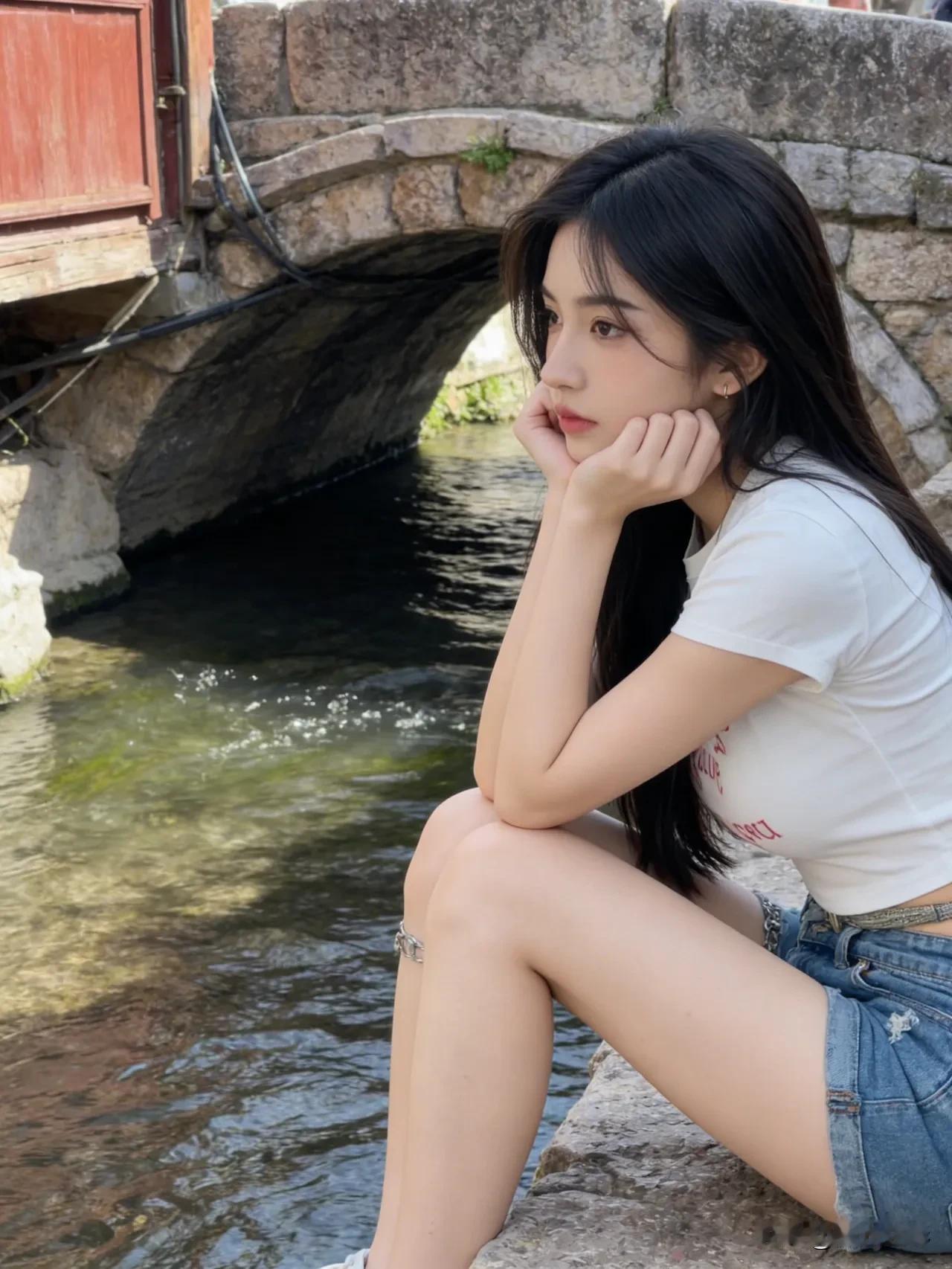 光之影 夏日清凉穿搭,古桥下的少女时光 纯真少女感穿搭 纯真少女风穿搭