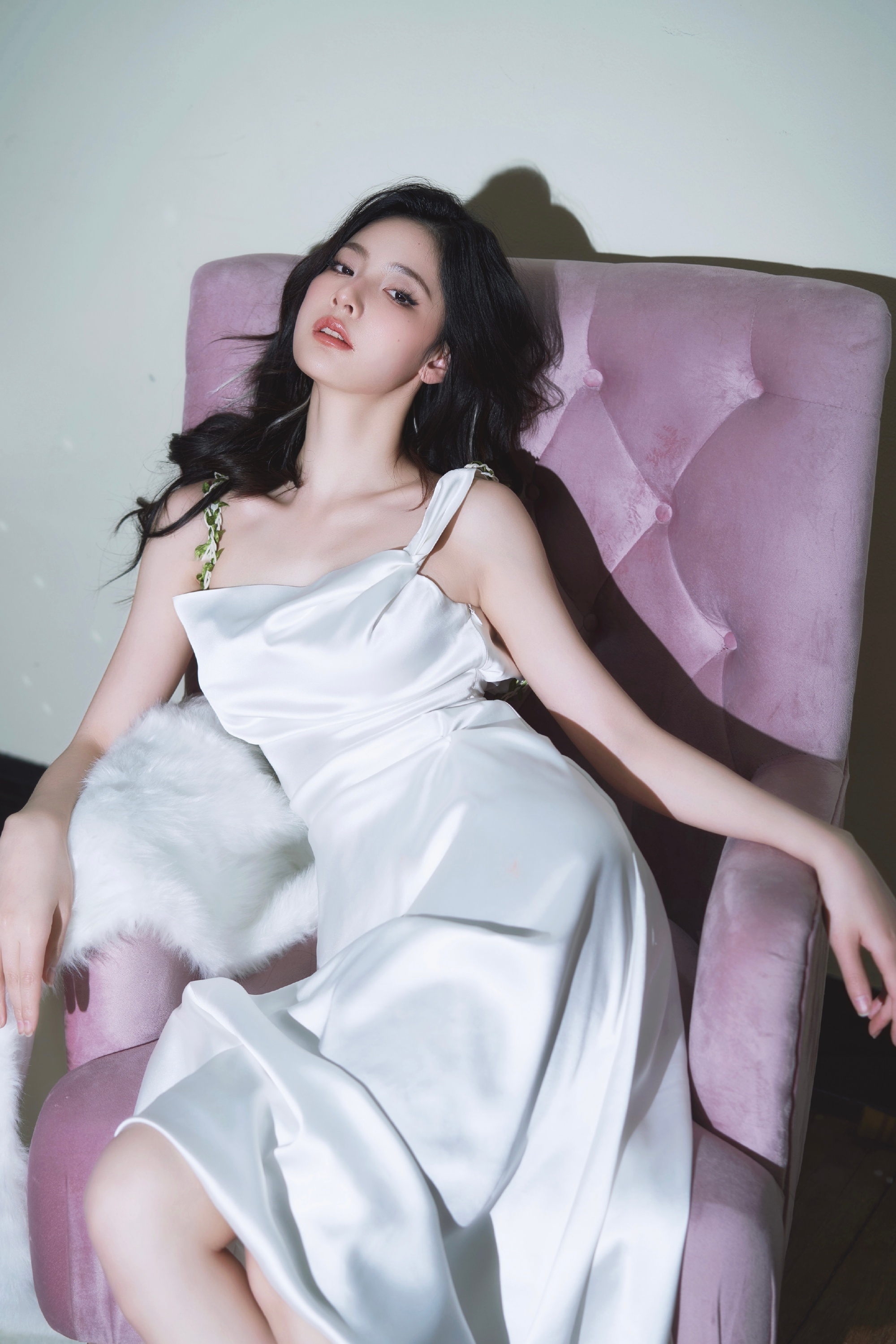 赵粤,白裙穿搭,柔美的少女姿态。赵粤