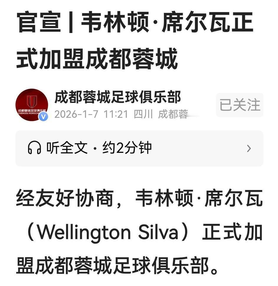 33岁与成都蓉城签约,席二娃收到最大生日礼物,那成都蓉城又看重他什么? 根据蓉城官宣表述,席二娃司职边锋,惯用右脚,擅长边路突破,其盘带能力与速度,可为蓉城带来多样化选择,让进攻手段更丰富,同时在密集赛程下增加阵容轮换深度。 看到没,老将席二娃是来打轮换的,类似于上赛季的卡隆和德尔加多;在强攻不下的情况下,会让他来边路突破射门或传球。虽然他年事已高,但以自由身引入,捡来一个二娃,成都蓉城真划得着。