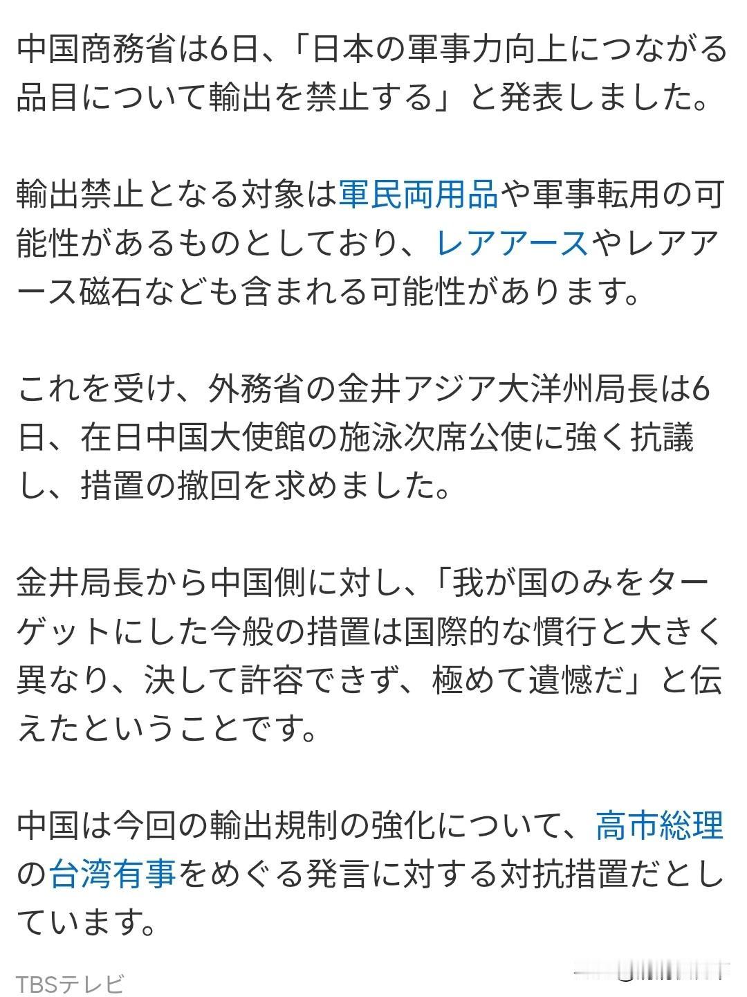 日本不反省自己言行过失,抗议个什么劲呢?! 我们中国商务部1月6日发布公告禁止对日本出口军民两用物相项。日本政府气急败坏,外务省居然还提出了抗议!! 他们的理由是:“发出这样仅仅针对日本的措施不符合国际惯例,绝不接受,非常遗憾!” 文章最后说,中国强化相关措施,是针对高市早苗台湾有事言论的对抗举措。 看来他们也知道原因,有错在先的是日本现职指导者,不去反省撤回,还来跟我们抗什么议?!!