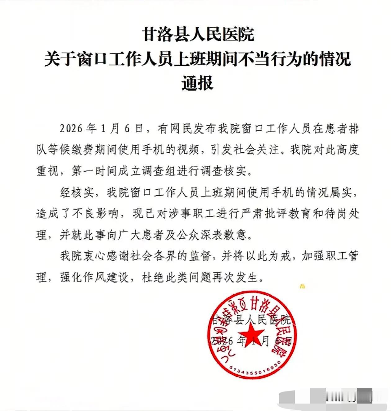 这波操作真的把“甩锅式管理”玩明白了!四川甘洛县医院的工作人员太冤了,电脑断网没法办业务,用手机上报工作数据,却被人拍视频举报“上班摸鱼”。 现场患者都安安静静排队,显然知道情况,可拍视频的人偏要断章取义抹黑。更离谱的是医院,都查清是工作所需了,为了平息网络舆论,还是把员工按“待岗”处理。 这哪里是解决问题,分明是牺牲员工平息事端。领导没勇气对抗不实言论,只敢拿基层员工开刀,这样的担当真让人寒心。 不实举报该追责,而认真工作的人不该成为背锅侠。 你觉得该怎么处理才对得起这位受委屈的工作人员?