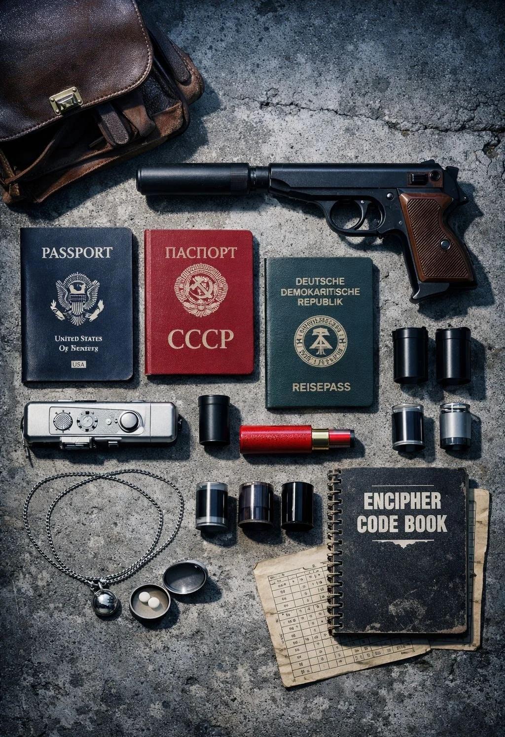 1962:查理检查站前,她最后一次补妆 1962年12月,柏林,零下14度。 东西方世界在弗里德里希大街(Friedrichstraße)对峙,铁丝网将天空一分为二。 这是从一间被遗弃的安全屋(Safehouse)里回收的随身物品。 物主身份不明。她在翻越柏林墙前,把这些东西留在了桌上。 【物证清单 Item List】 1. Minox B 微型间谍相机 冷战时期情报人员的标配。只有打火机大小,却能拍下50张高分辨率的图纸。链条已经磨损,说明被高频使用过。 2. 三本不同国籍的护照 早上她是来自纽约的记者,中午是莫斯科的芭蕾舞演员,晚上是东德的打字员。 在这个分裂的城市,名字只是通行证,不是自我。 3. 改装过的口红(色号不明) 💄 外表是一支普通的红底高跟鞋经典色,但旋开底部,是一枚中空的胶囊。 对于女间谍来说,口红不仅是唯一的色彩,也是最后的防线。它可能藏着微缩胶卷,也可能藏着剧毒。 4. 珍珠项链与华尔特PPK 优雅与暴力的共生。珍珠是为了混入大使馆晚宴,PPK是为了活着走出来。 ✍🏻 在那个只有黑白灰的年代,她把所有的恐惧都锁进了这个包里。 有人说看见她穿过雾气,走向了查理检查站;也有人说,她就在那晚的爵士乐里消失了。 edc 历史 谍战 冷战 酷 历史考据 翻包记 翻包