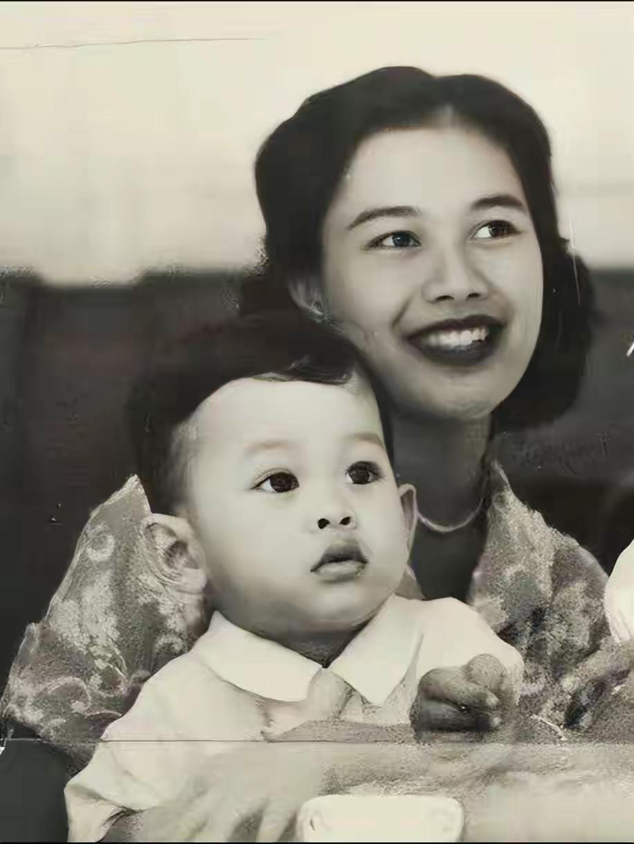 当年诗丽吉王后怀抱唯一的儿子一脸幸福,后来她儿子当父亲了,他抱着提帮功也是一脸的幸福。母子俩两代人,幸福的心情都是一样的。