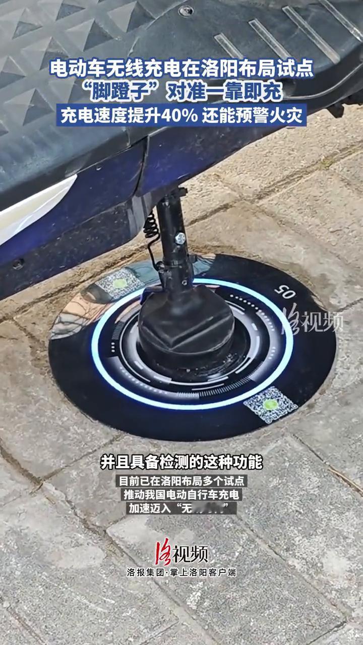 电动车无线充电在洛阳布局试点,"脚蹬子"对准一靠即充,充电速度提升40%还能预警火灾。 近日河南洛阳,河南玖蓝新能源科技有限公司在国内率先完成新一代电动自行车无线充电产品批量生产。率先将无线充电技术应用到电动自行车的充电上面来的,充电的速度提升了40%以上,并且具备检测的功能,在充电的过程中间可以做到提前预警,防范火灾。小区电车充电 无线充电 小区电车充电 无线充电 洛阳电车充电 河南充电车