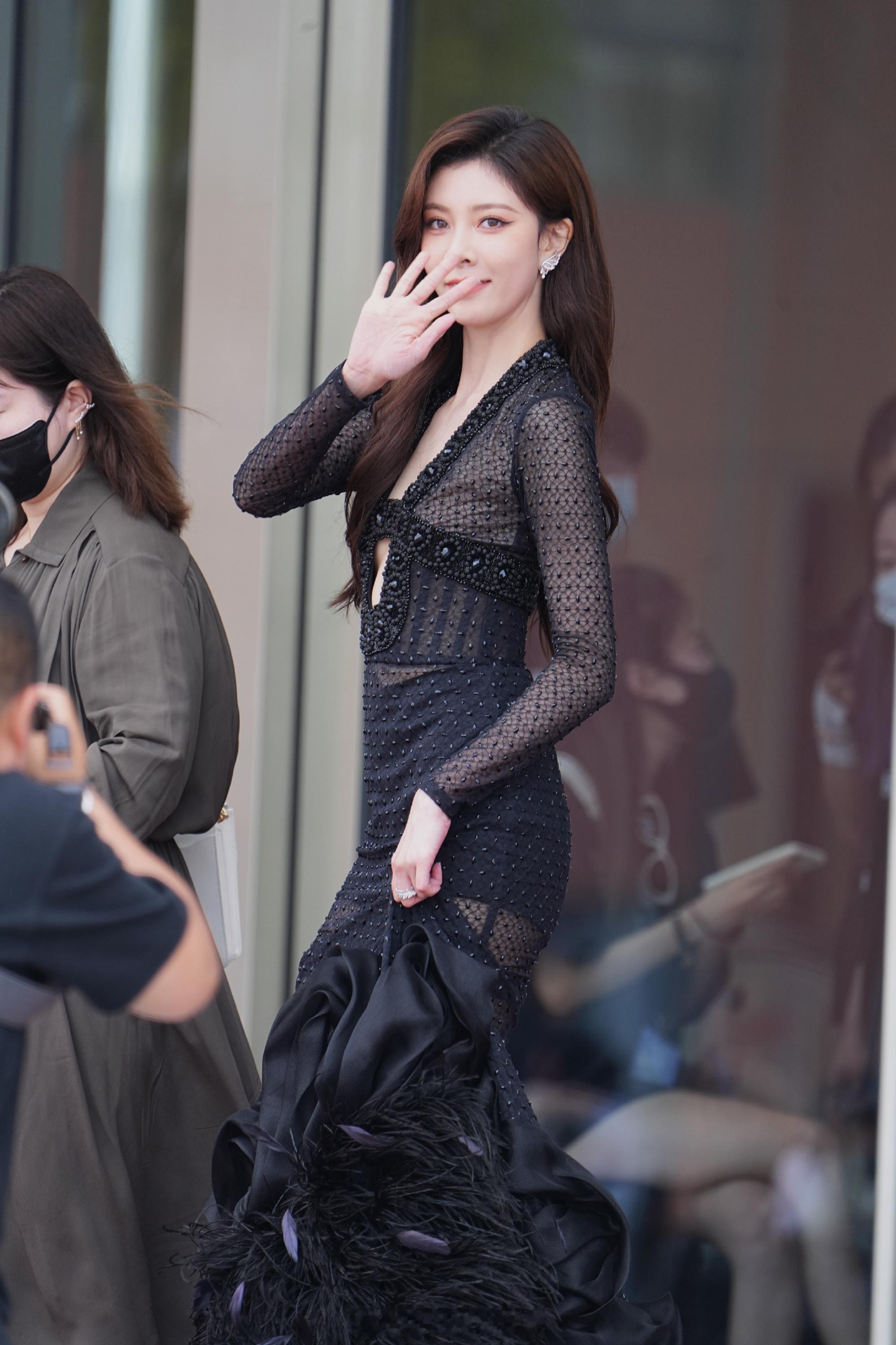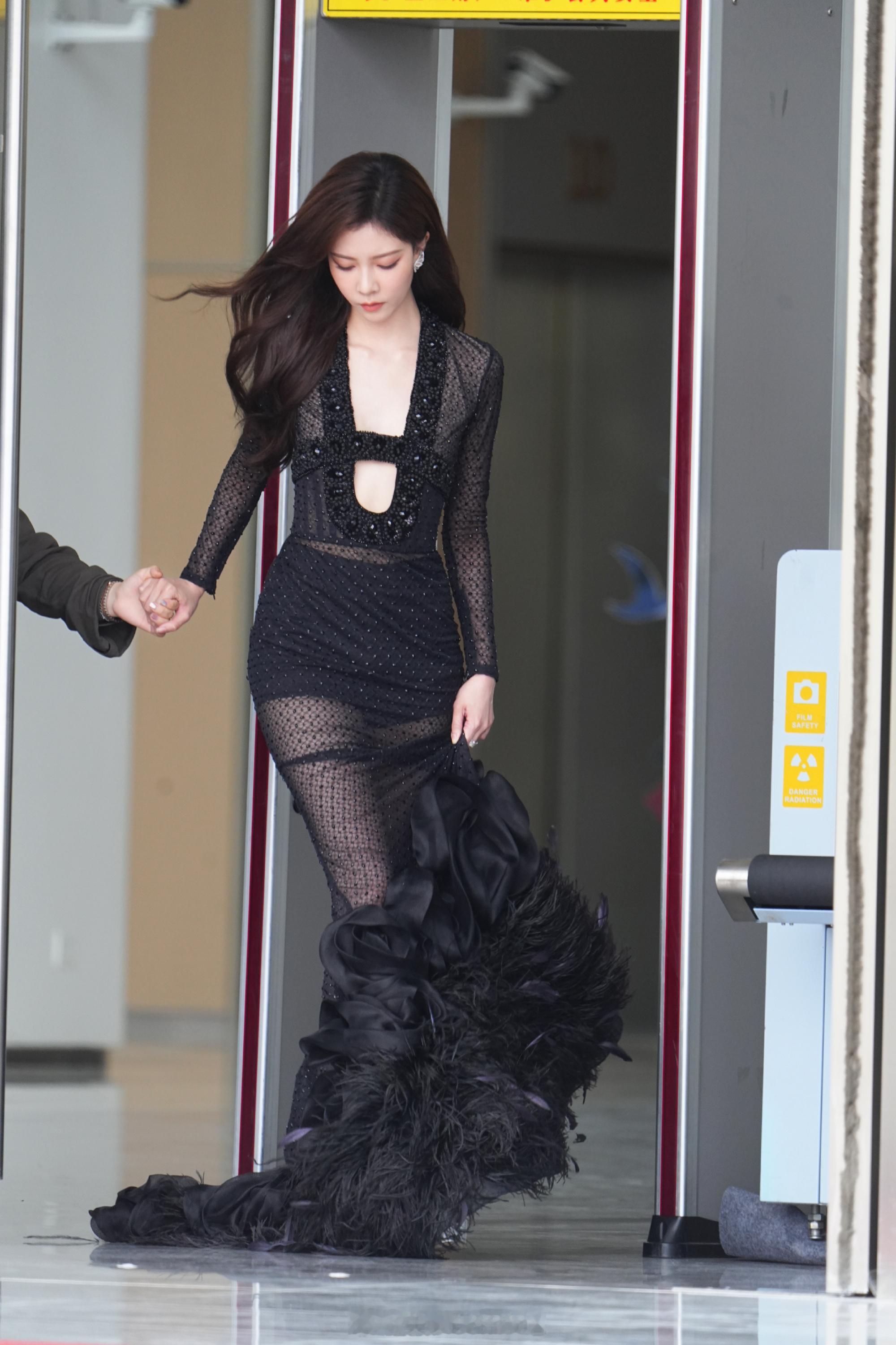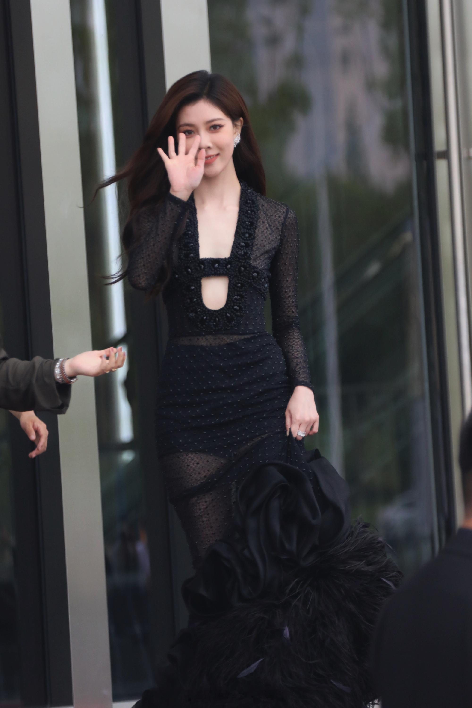 宋妍霏芭莎上班照黑纱蕾丝裙