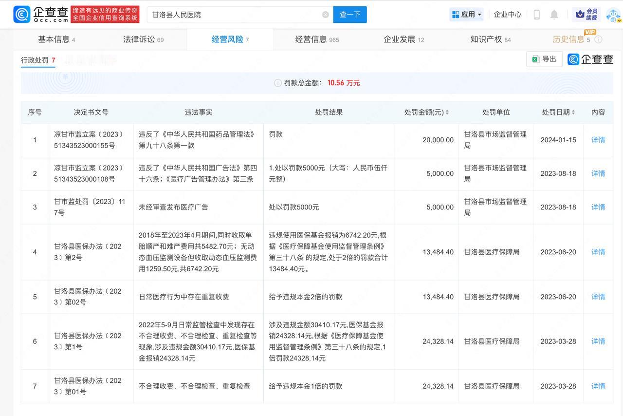 【起底员工上班玩手机涉事医院,收费员玩手机致多人排队医院曾被罚】 1月7日, 据媒体报道,四川甘洛一医院收费员玩手机多人排队待缴费引发热议。对此,甘洛县人民医院通报称,医院窗口工作人员上班期间使用手机的情况属实,造成了不良影响,现已对涉事职工进行严肃批评教育和待岗处理。医院通报收费员玩手机致多人排队 企查查APP显示,涉事医院甘洛县人民医院开办资金1302万,该医院曾因医疗损害责任纠纷被起诉。此外,该医院曾因不合理收费、不合理检查、重复检查等被多次处罚。