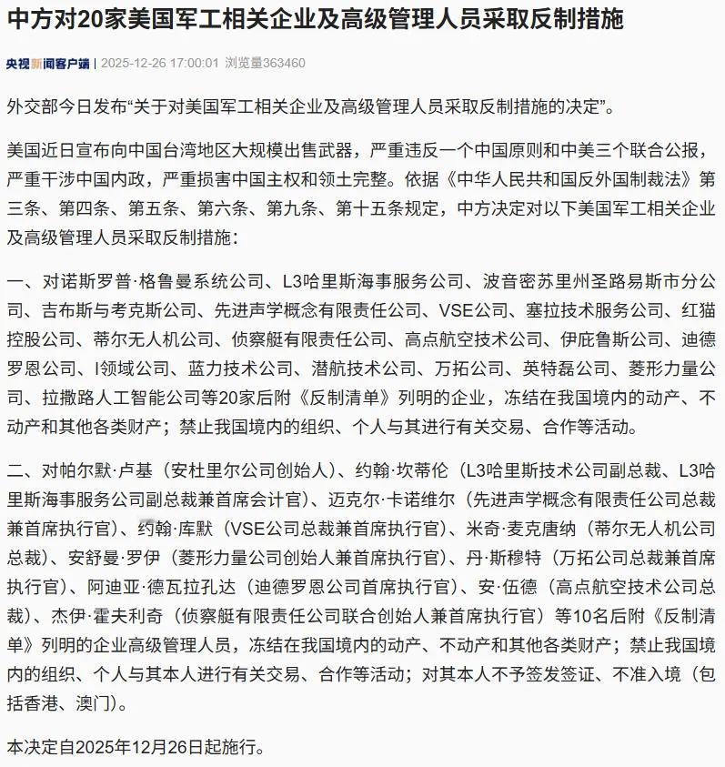 我方终于出手,宣布对美售台武器的20家军火供应商及其高管进行精准有力的制裁反击! 就该这样。 你不打疼他,他就装作不知道你会功夫! 在此,敬告老特及其背后的军工复合体大佬们: 别忙叫疼。如果这样都还不知收敛的话,回旋镖式的大招还在后头呢,咱走着瞧。 古语有云:早知今日,何必当初!