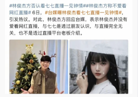 台媒曝林俊杰看七七直播一见钟情 台媒报道林俊杰和网红七七是由七七直播公司老总介绍认识的,台媒称林俊杰私下很喜欢看美女直播,跟直播公司老总是好哥们,所以有一次看到七七以后,对七七就一见钟情,于是直播公司老总牵线搭桥,两个人恋爱已经快2年了,据悉林俊杰很爱七七,外出工作,开演唱会也是都带着,而且林俊杰妈妈很认可七七,很喜欢她,据悉两个人是奔着结婚去的。 林俊杰出手阔绰,爱马仕包包也是经常送,台媒称两个人疑似好事将近,网友看了以后纷纷送祝福,称林俊杰40多岁了,也该结婚了! 然而就在刚刚,林俊杰公司否认台媒报道,推翻台媒的所有爆料,否认二人是直播公司老公牵线认识的! 不得不说林俊杰公司反应也很快,也是5g冲浪,不管怎么样既然能带着见父母,肯定是关系稳定,期待好消息!