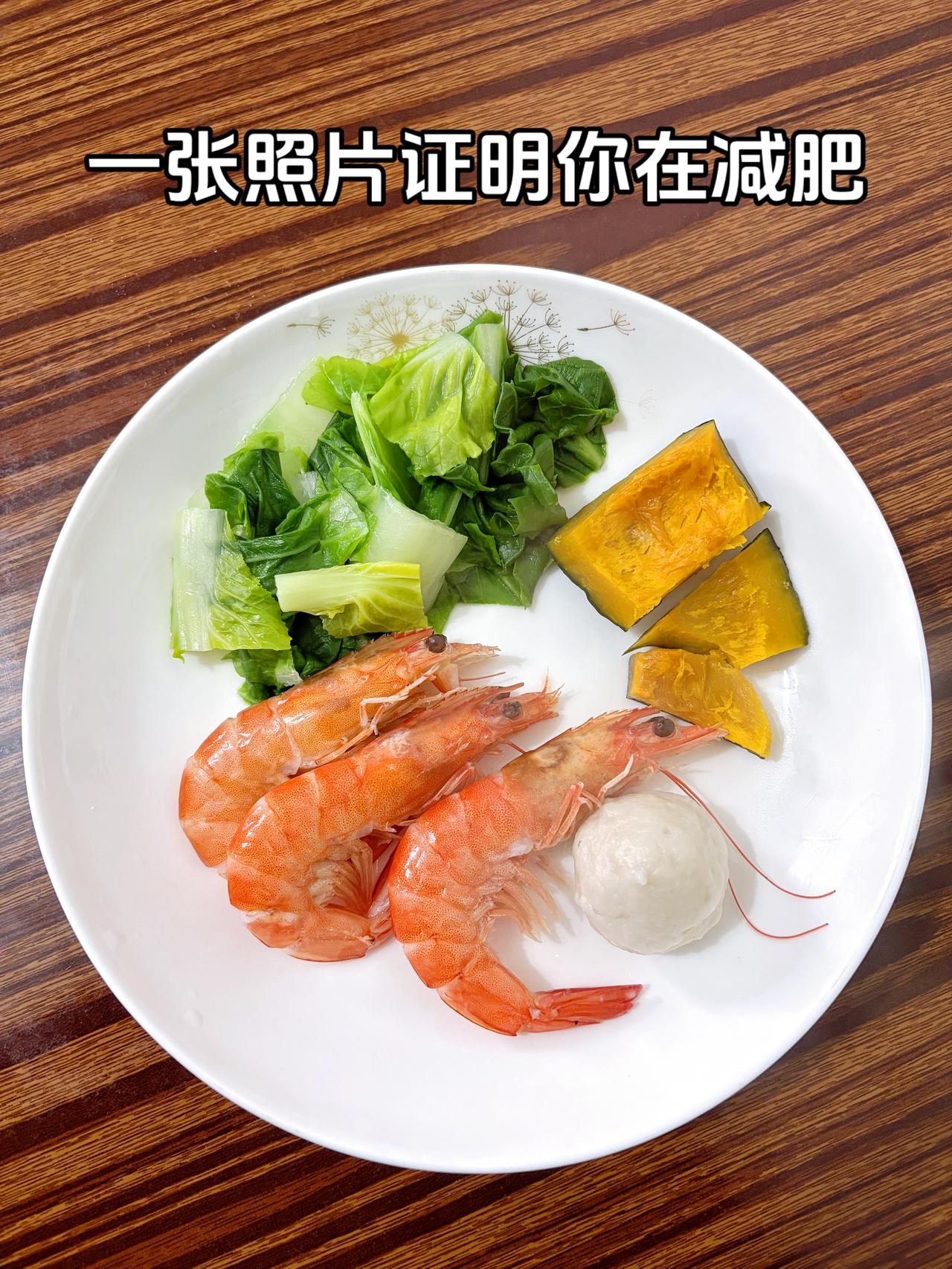 泪水打湿我的减脂餐,目标103斤,加油 今日减脂晚餐:虾+鱼丸+青菜+南瓜 体重管理