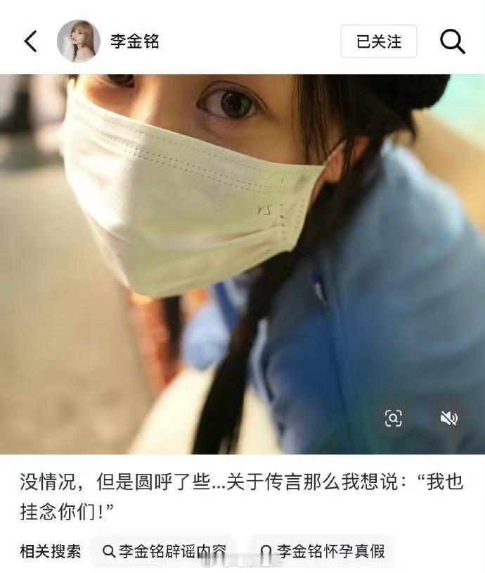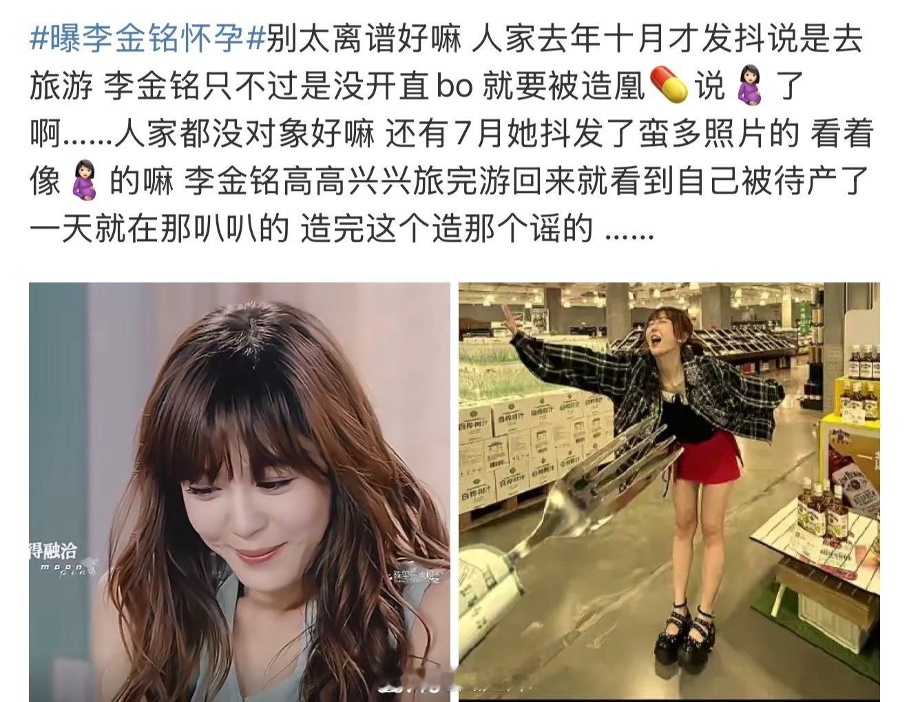李金铭都没对象有网友曝李金铭怀孕,但粉丝说李金铭都没对象,发的照片也不像怀孕了,随后李金铭本人也出来否认了