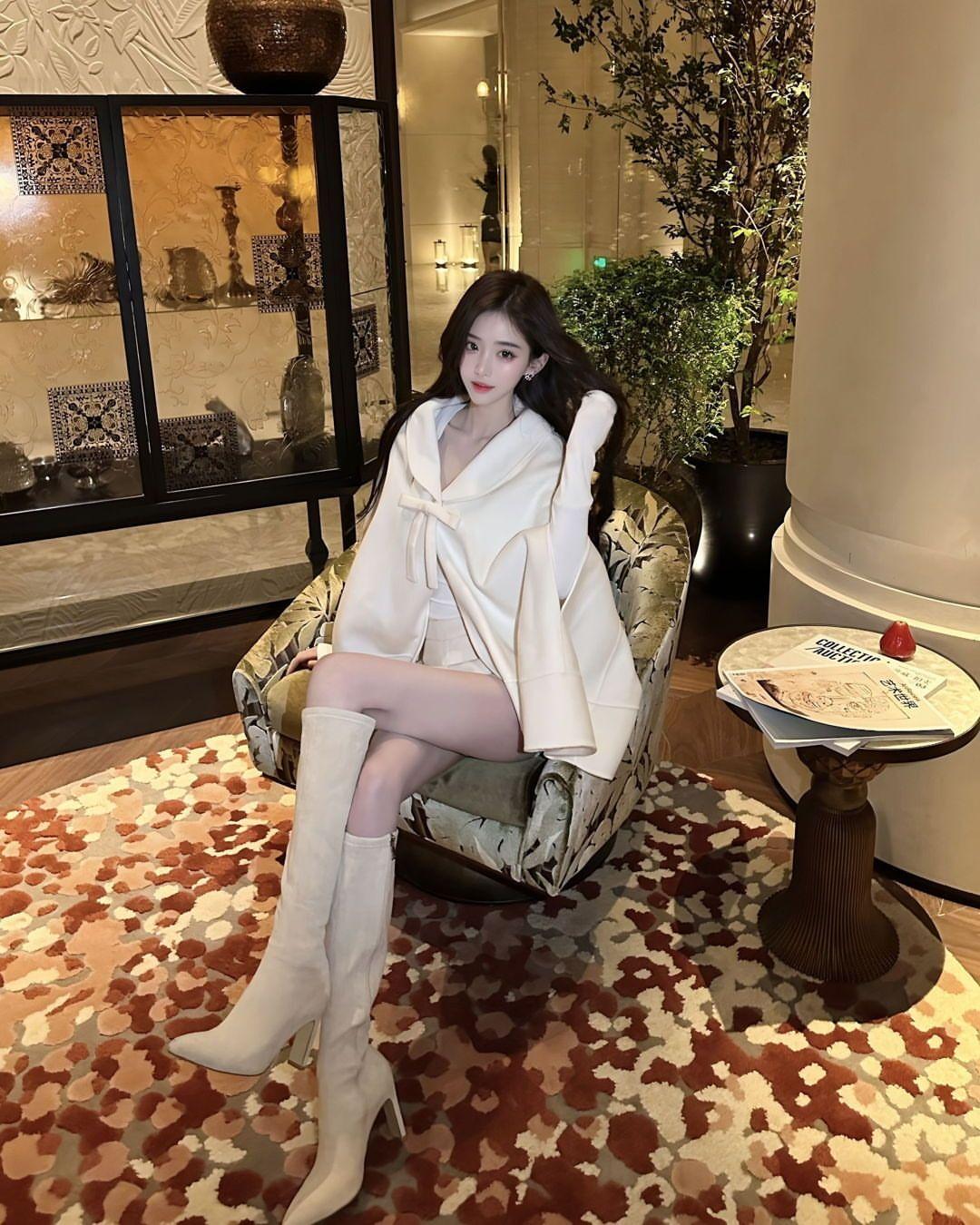 优雅白衣少女,坐在复古沙发上,散发迷人魅力。优雅自信穿搭分享