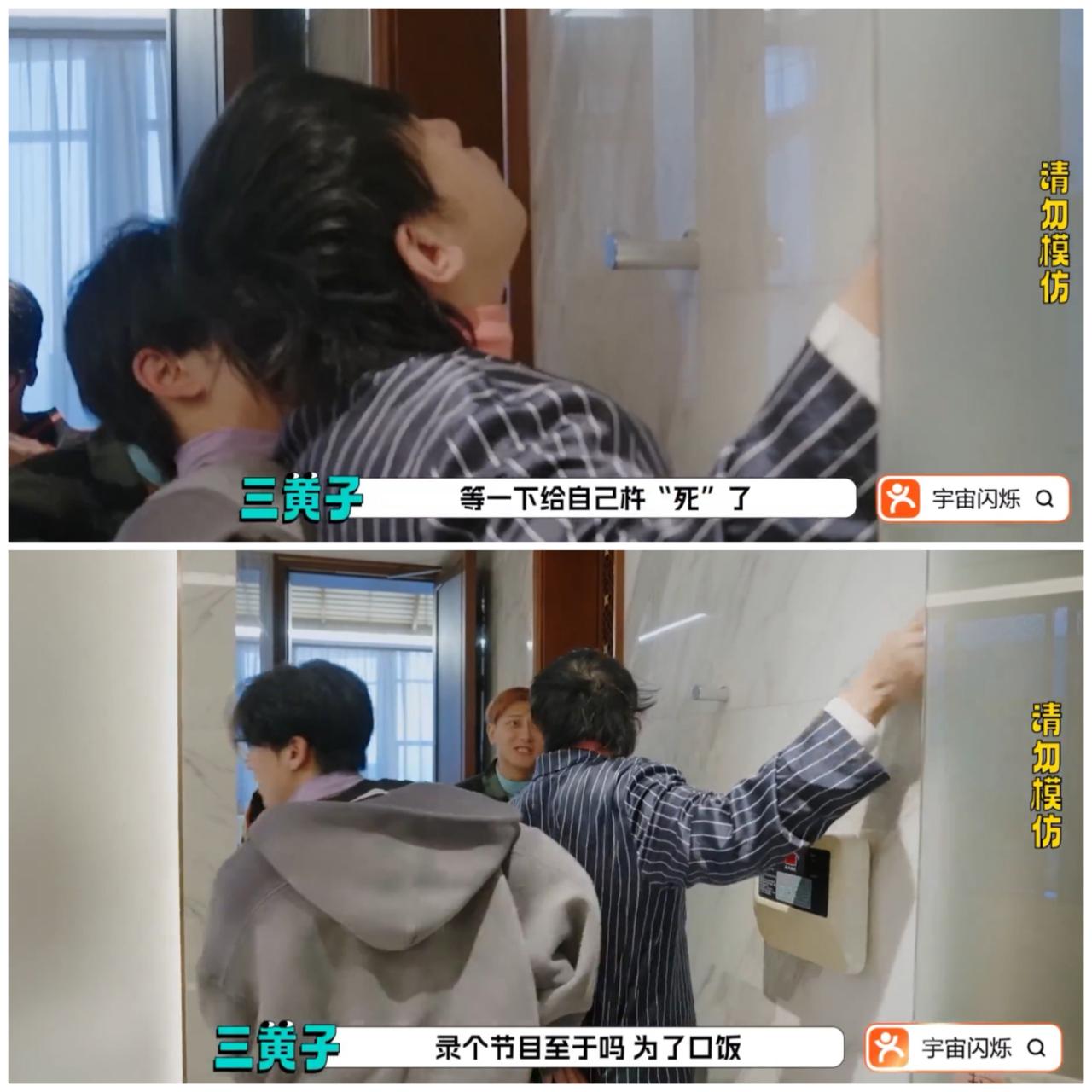 黄子韬大喊 为了一口吃的, 至于那么玩命吗? 眼看于洋为了完成节目的任务, 对着墙上的小横杆, 就往脖子上“戳”。 黄子韬眼看于洋的危险动作, 吐槽为了一口早餐, 就真的不要命了吗? 是呀, 那么一个墙上的横钩, 真很危险, 一不小心就戳穿脖子了。 当下这个节目游戏环节, 真的一点都不合理, 就不能考虑一下安全的游戏吗? 专门都是一些奇葩的游戏。 不过工作人员应该之前试玩过的, 如果于洋选择其他方式 完成任务也是可以的, 只是他自己选择这个危险方法而已。 其他人用门把手,摄像器固定钩等等方式。 之前已经有人为了录制综艺丧命了, 当下艺人还不认真考虑一下安全问题。 黄子韬刚骂完于洋玩游戏不要命, 自己尝试了多种办法都不行, 于是打算用了于洋的危险办法, 真的让网友看到这样一幕哭笑不得, 这个打脸来得太快了吧。