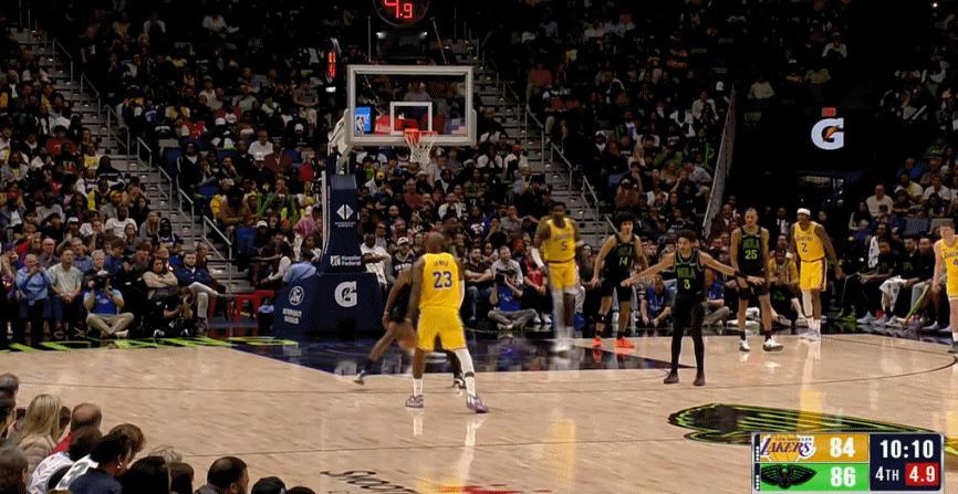 湖人三节打完落后7分,第四节上来詹姆斯连中两个三分+一个助攻直接反超,今天状态太