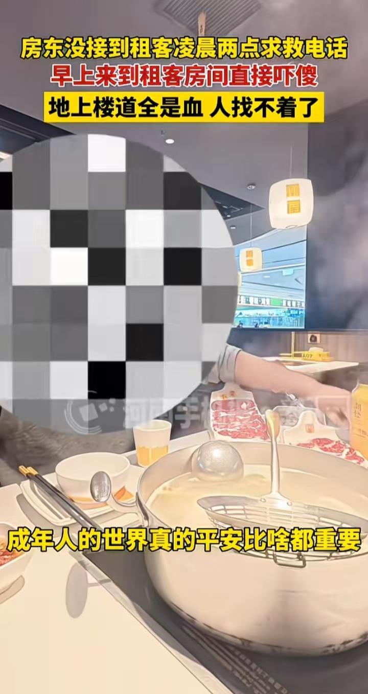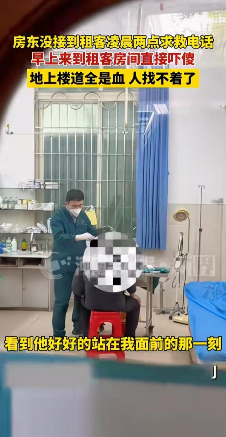 租客半夜两点打求救电话没接上,房东早上到出租房一看,地上楼道都是血,当时感觉天都要塌了,赶紧报警,到处找人 房东手机晚上开了勿扰模式,早上才看到看到租客求救信息,打电话没人接,赶紧到出租房,当看到楼道地上都是血的时候,腿都软了。再看房间门开着没人,赶紧报警,然后请假,找人 11点多,租客终于回电话了,人在医院,原来他昨晚喝多了,在楼道摔了一跤,摔破了头,现在医院包扎,房东赶紧冲去医院,看到租客好好站在那时,终于放心了 从医院出来,房东带他去吃火锅,给他压惊,也是给自己压惊吧,他说,成年人的世界,平安比啥都重要 真是虚惊一场啊,说实话,看到地上的血,再想想半夜的求救信息,房东估计都脑补了很多血腥大戏吧,吓人啊,无比后悔为什么没接到求救电话,还好,最后人没事 不少网友骂,弄什么勿扰模式啊,最讨厌这种有事找不到人的,真有重要的事找不到人,耽误不起啊!房东也没想到,半夜两点能有这样的求救事件,估计他以后再不会开勿扰了,这房东人很不错了,这事也算是给他一个警醒吧